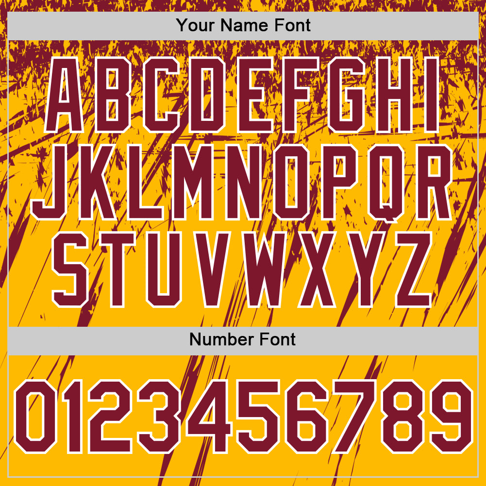Custom Gold Crimson-White Splash 3D Pattern Design Bomber Full-Snap Varsity Letterman Hoodie Jacket