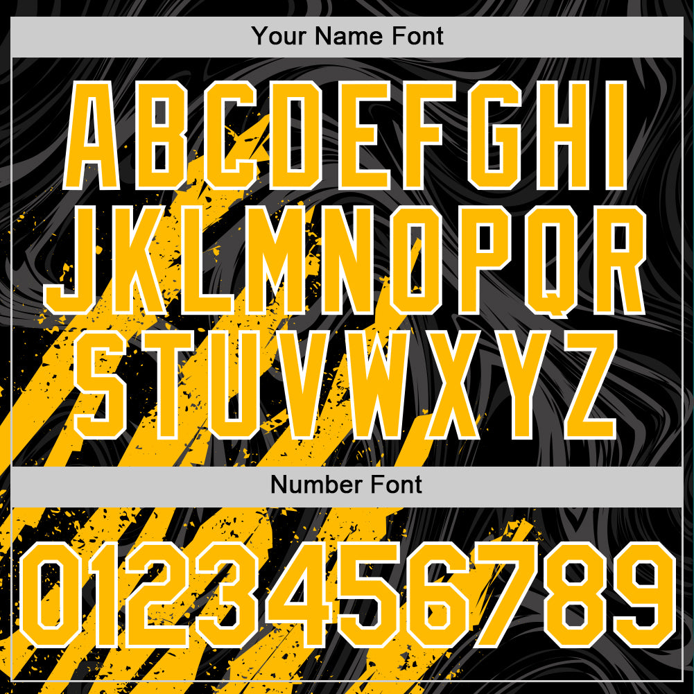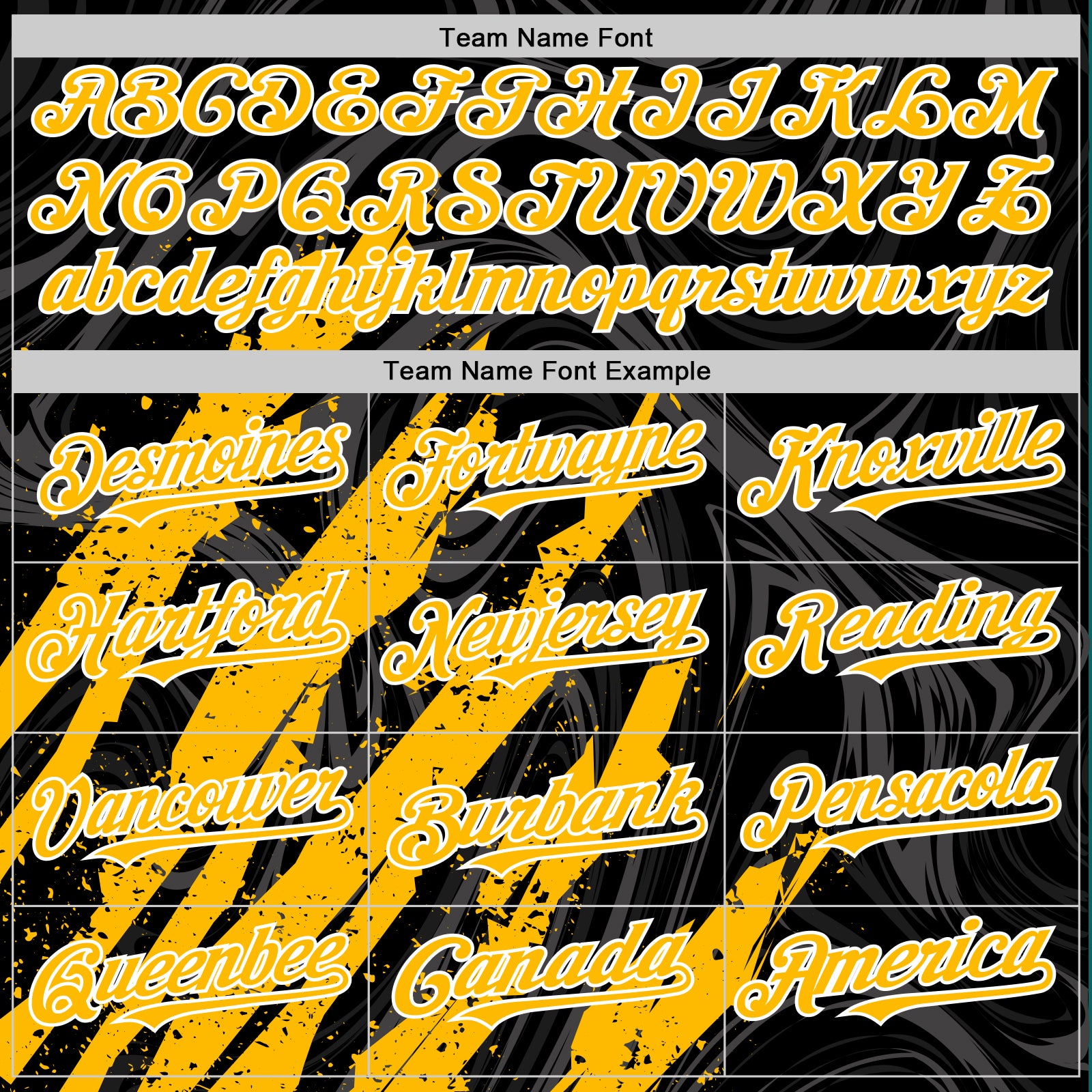 Custom Black Gold-White Splash 3D Pattern Design Bomber Full-Snap Varsity Letterman Hoodie Jacket