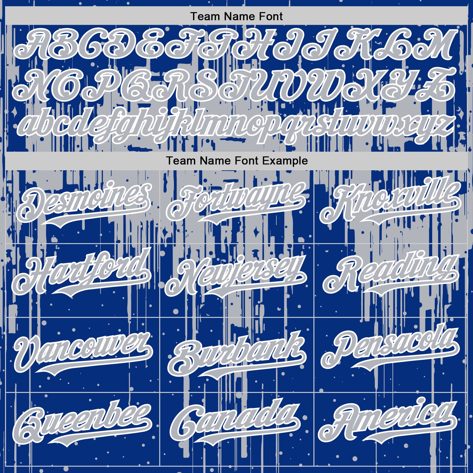 Custom Royal Gray-White Dripping Splatter 3D Pattern Design Bomber Full-Snap Varsity Letterman Hoodie Jacket