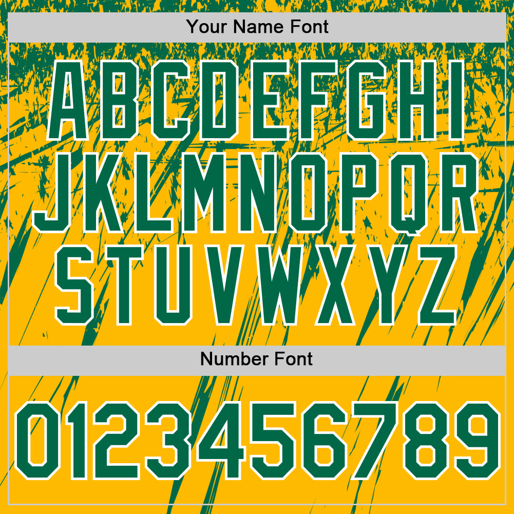 Custom Gold Kelly Green-White Splash 3D Pattern Design Bomber Full-Snap Varsity Letterman Hoodie Jacket