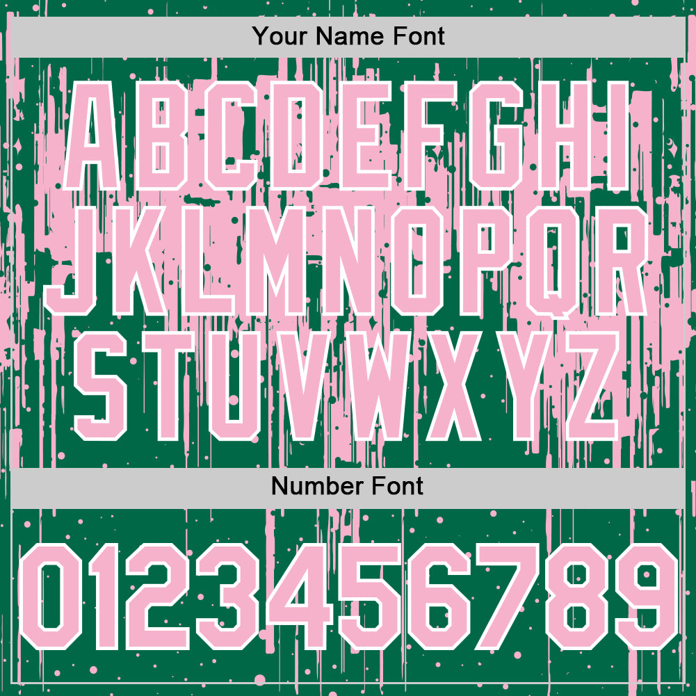 Custom Kelly Green Light Pink-White Dripping Splatter 3D Pattern Design Bomber Full-Snap Varsity Letterman Hoodie Jacket