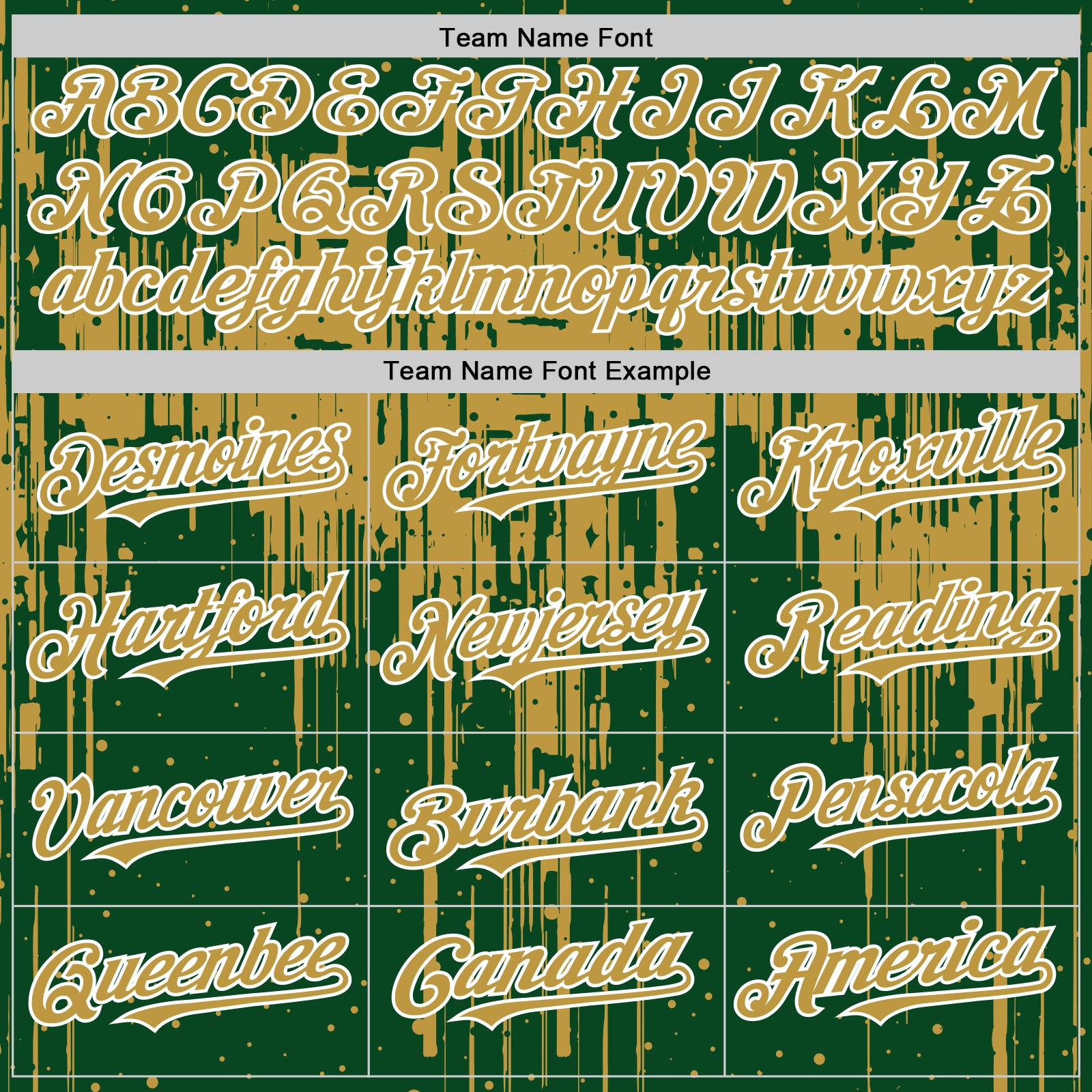 Custom Green Old Gold-White Dripping Splatter 3D Pattern Design Bomber Full-Snap Varsity Letterman Hoodie Jacket