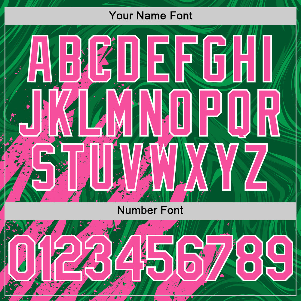 Custom Kelly Green Pink-White Splash 3D Pattern Design Bomber Full-Snap Varsity Letterman Hoodie Jacket
