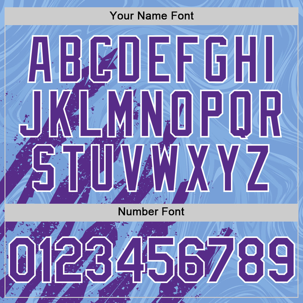 Custom Light Blue Purple-White Splash 3D Pattern Design Bomber Full-Snap Varsity Letterman Hoodie Jacket