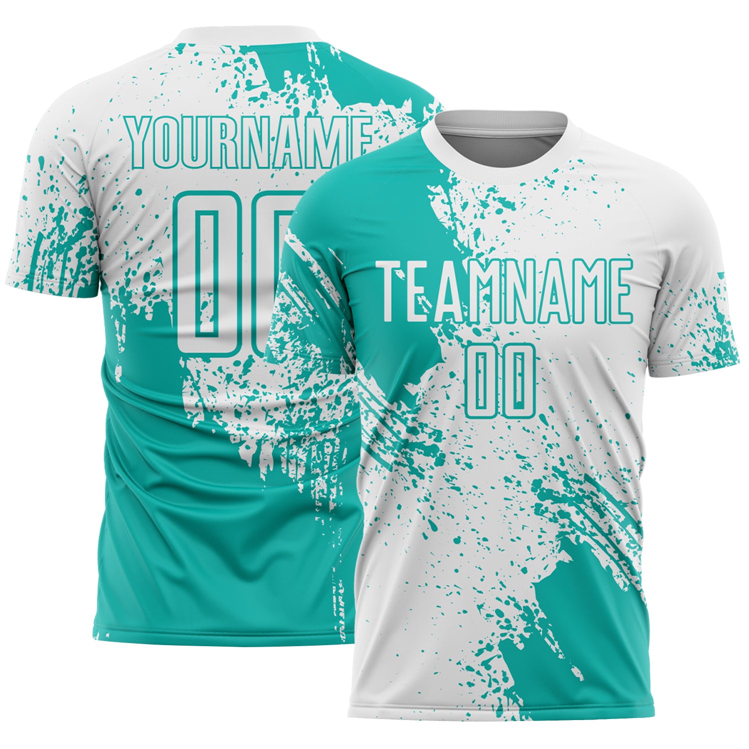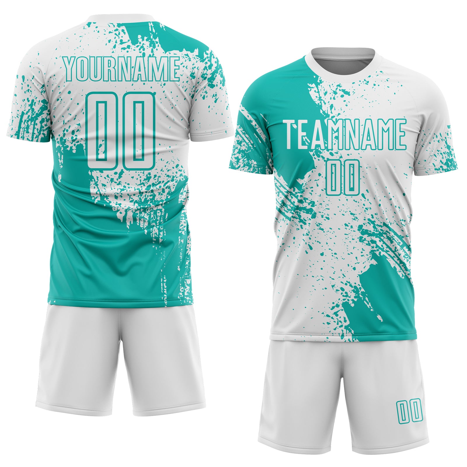 Custom White Aqua Abstract Brush Stroke Sports Sublimation Soccer Uniform Jersey