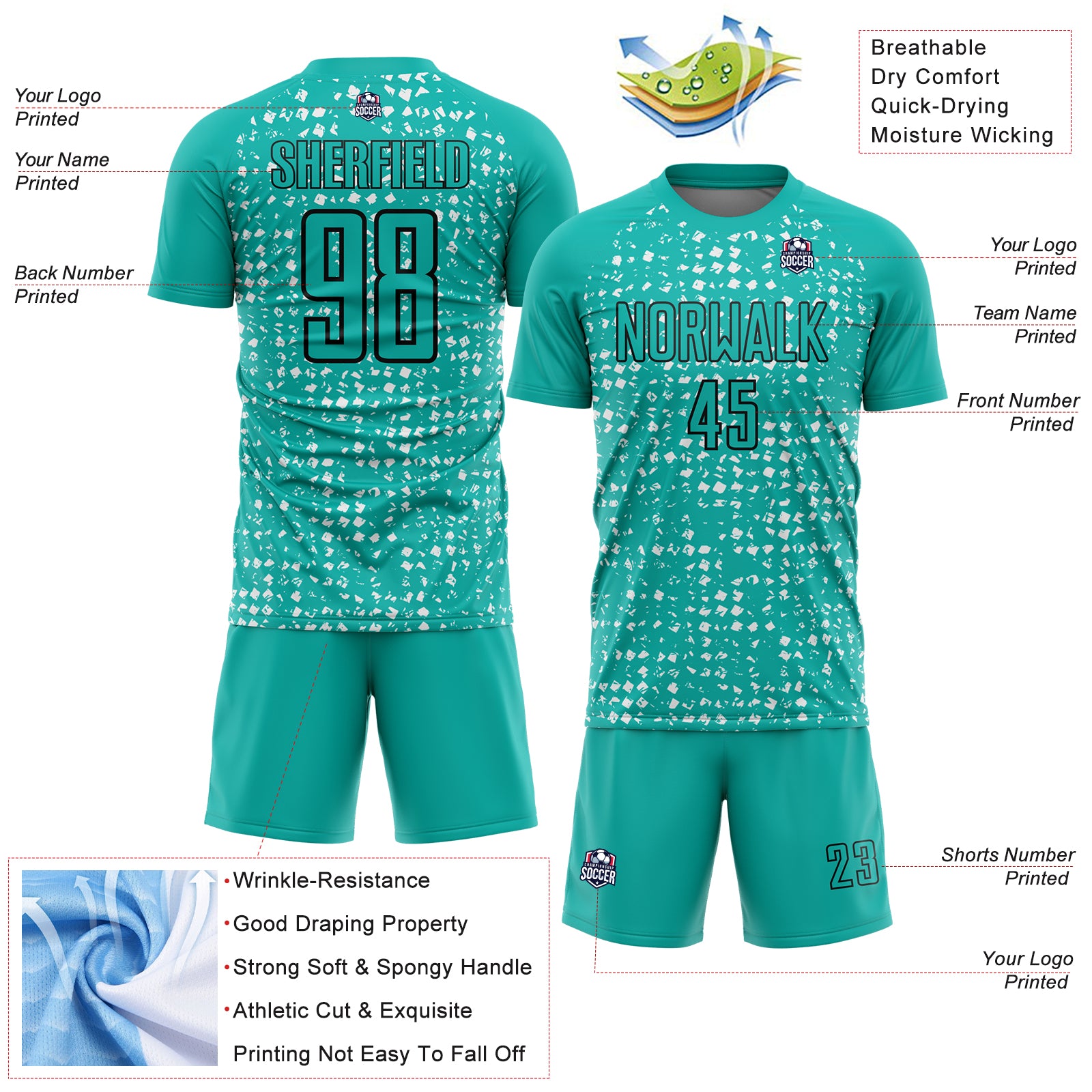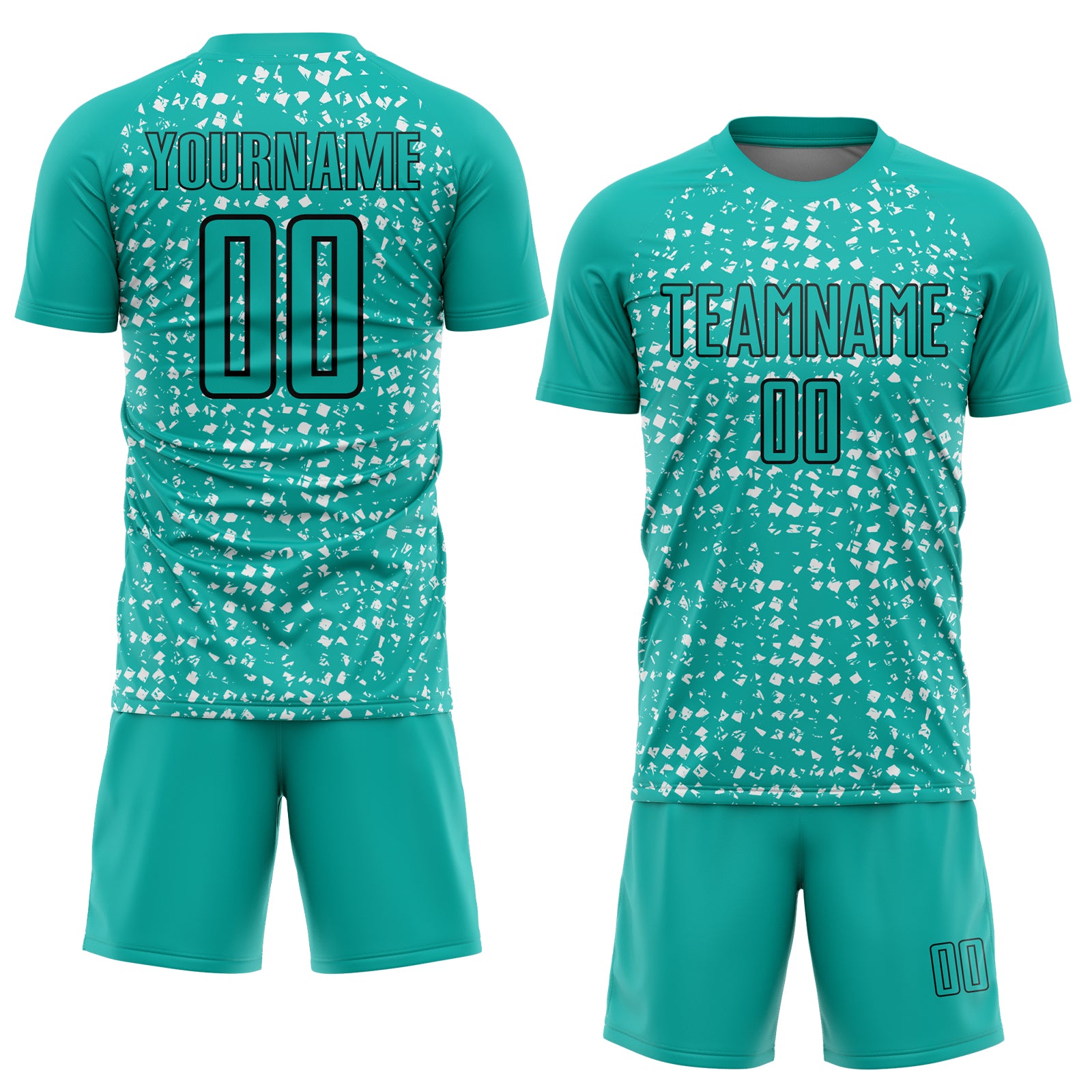 Custom Aqua Black-White Digital Geometric Fragment Speckles Sublimation Soccer Uniform Jersey