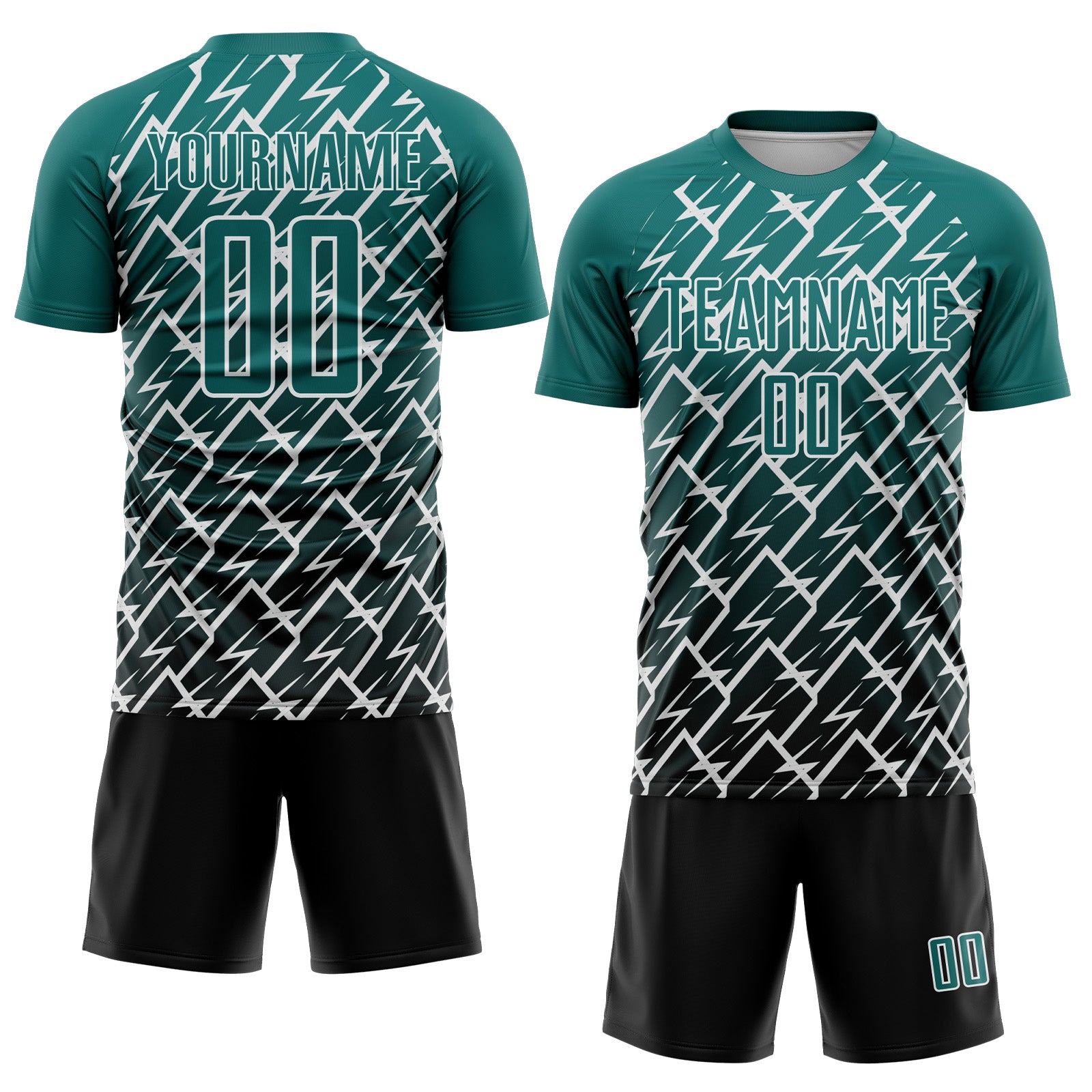 Custom Teal Black-White Lightning Sports Sublimation Soccer Uniform Jersey