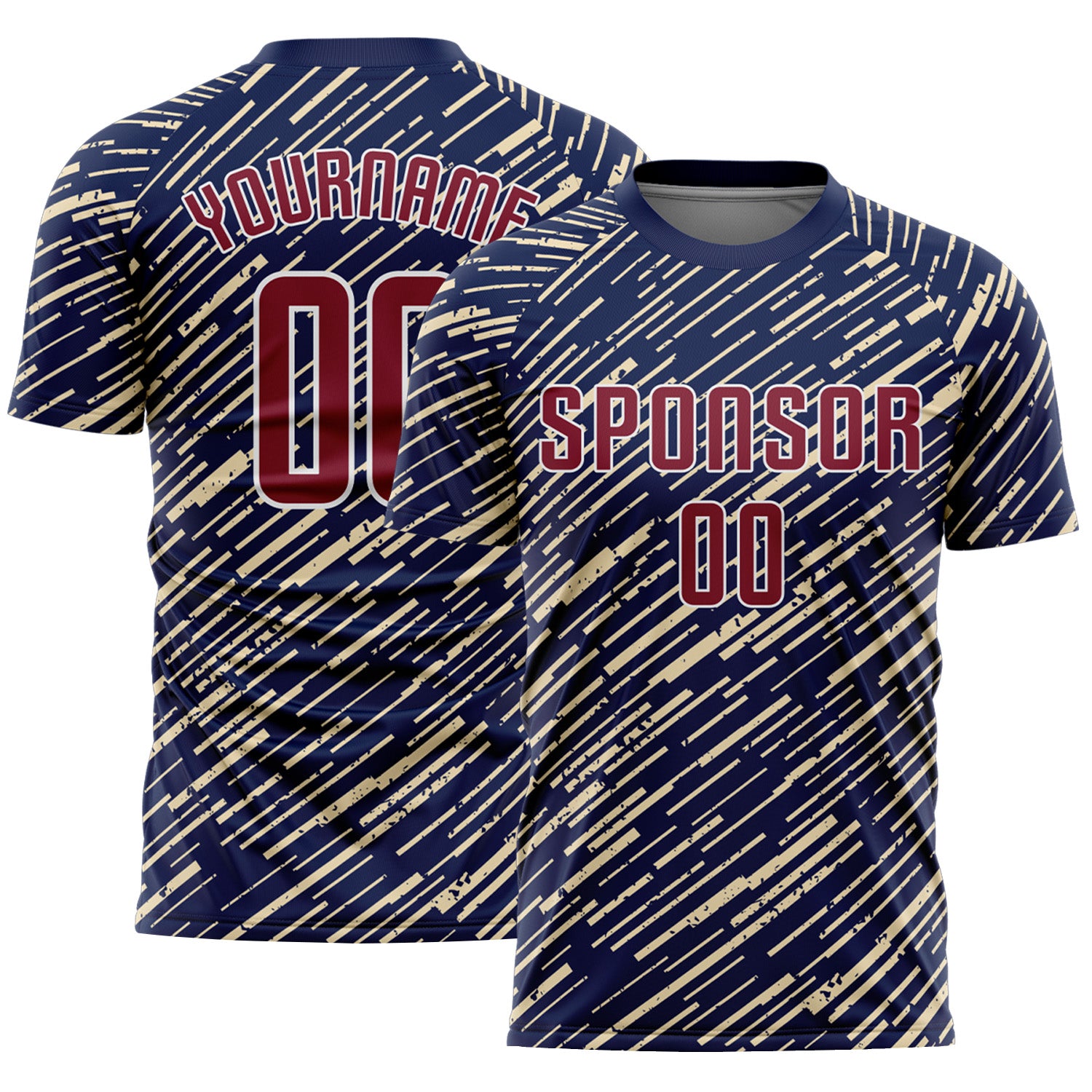 Custom Navy Crimson Cream-White Line Sports Sublimation Soccer Uniform Jersey
