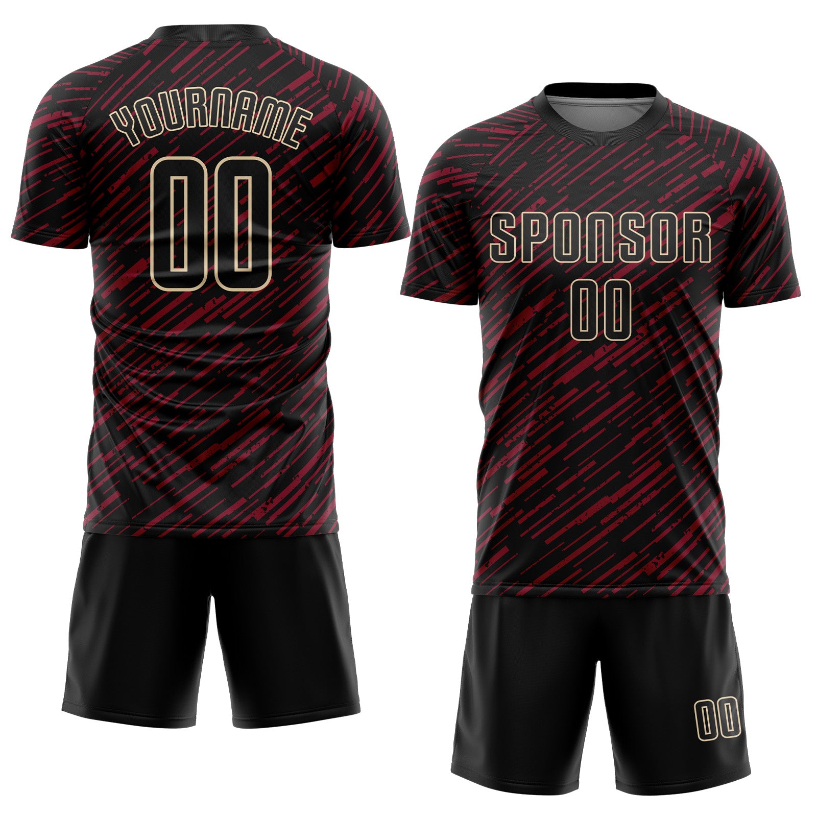 Custom Black Crimson-Cream Line Sports Sublimation Soccer Uniform Jersey