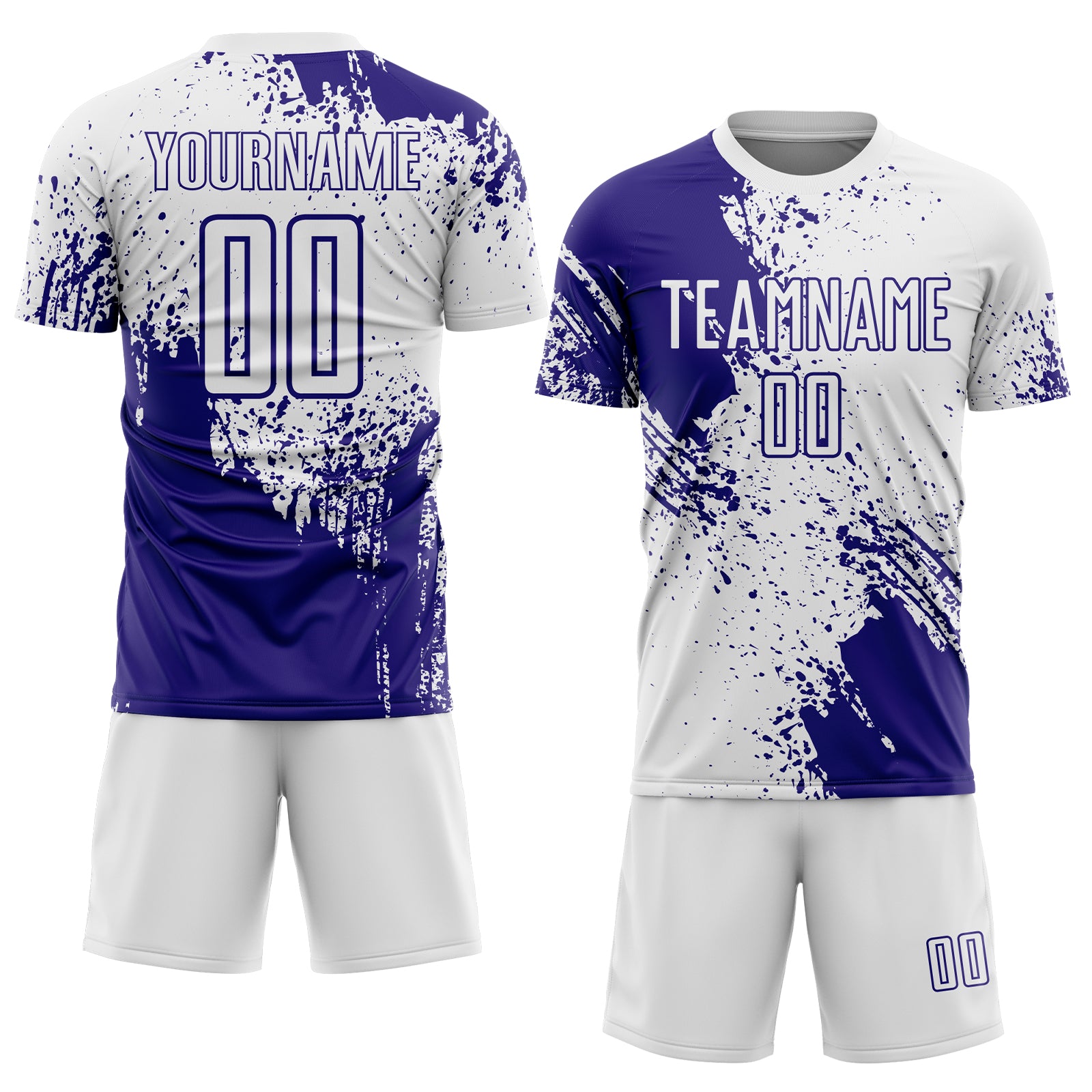 Custom White Dark Purple Abstract Brush Stroke Sports Sublimation Soccer Uniform Jersey