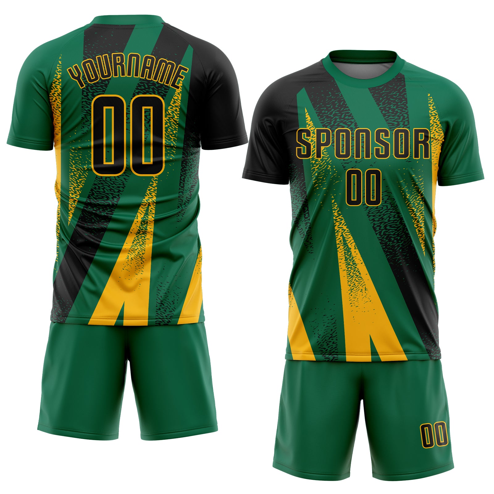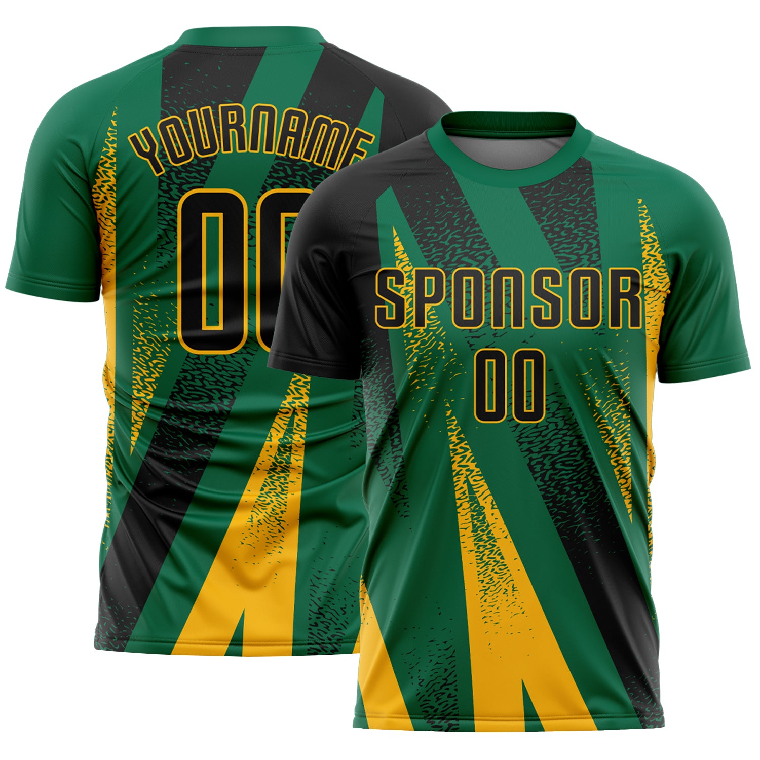 Custom Kelly Green Black-Gold Radial Burst Sports Sublimation Soccer Uniform Jersey