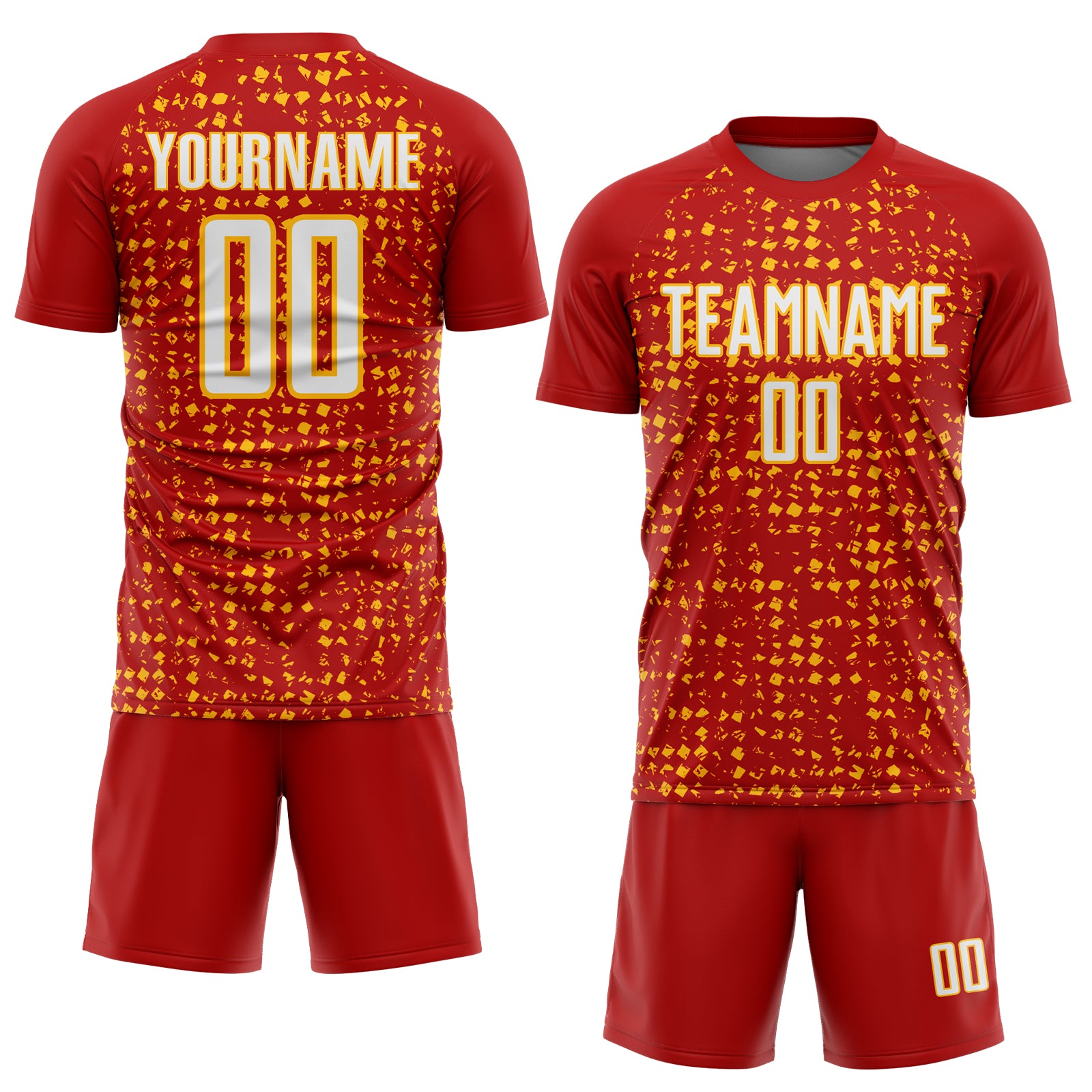 Custom Red White-Gold Digital Geometric Fragment Speckles Sublimation Soccer Uniform Jersey