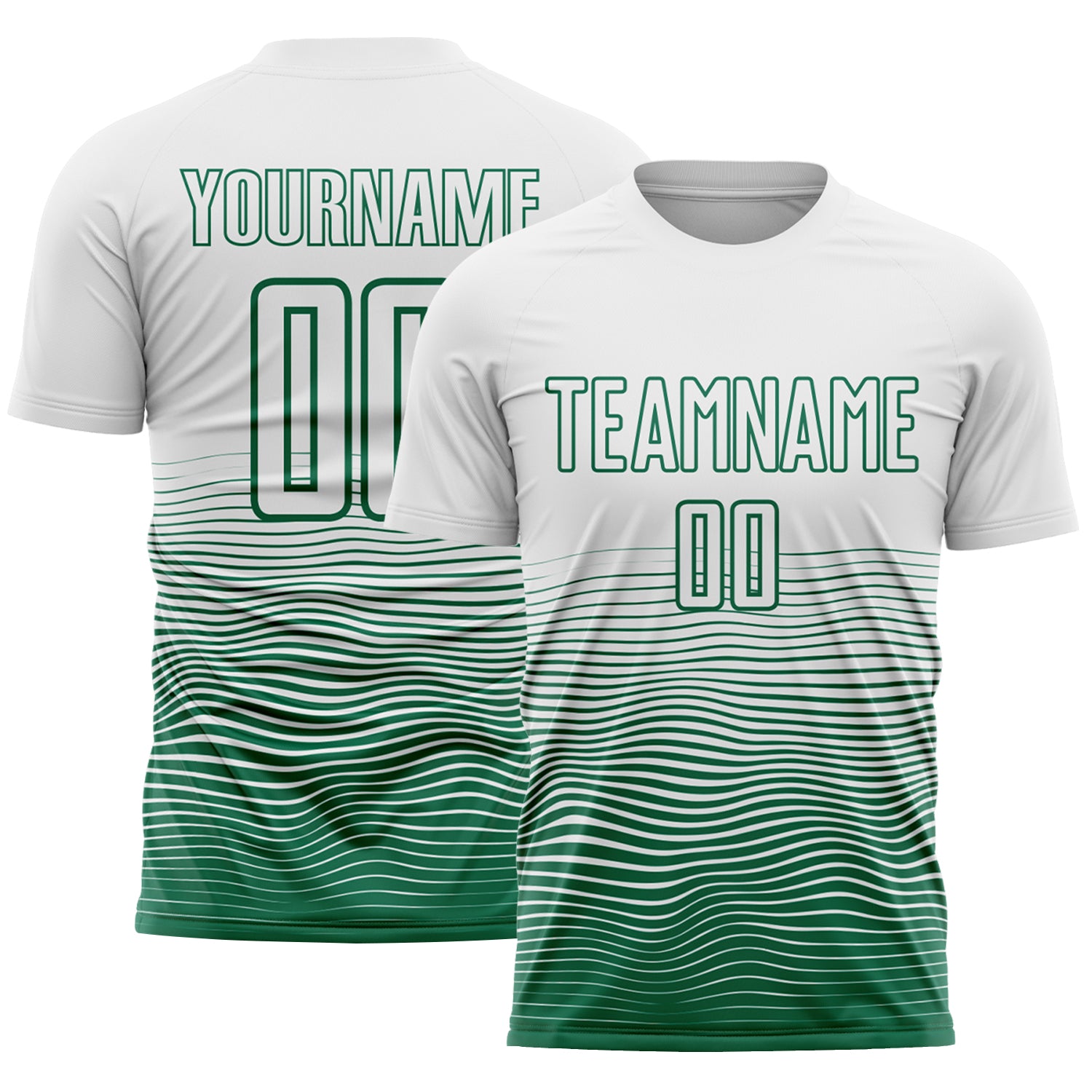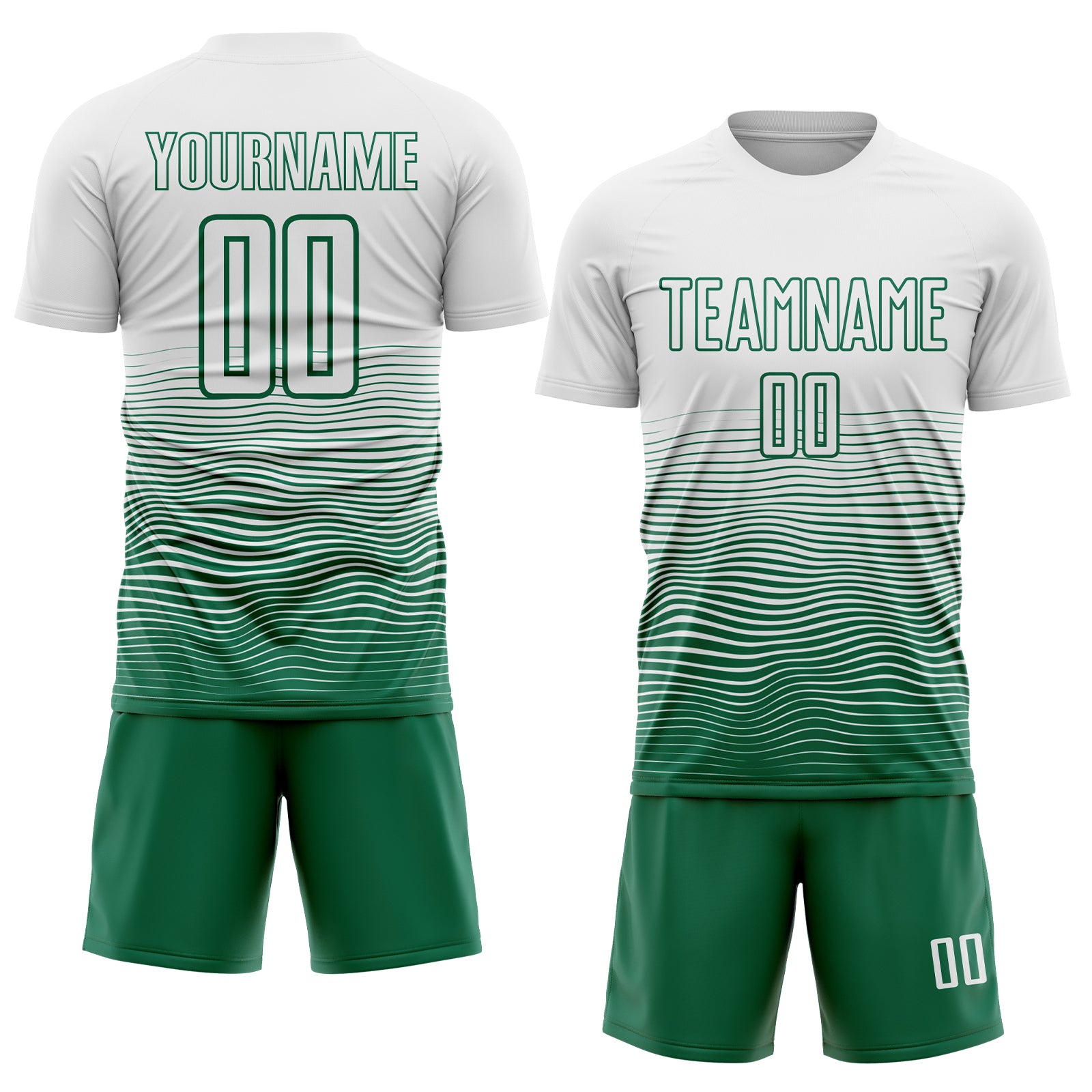 Custom White Kelly Green Gradient Wave Line Sports Sublimation Soccer Uniform Jersey