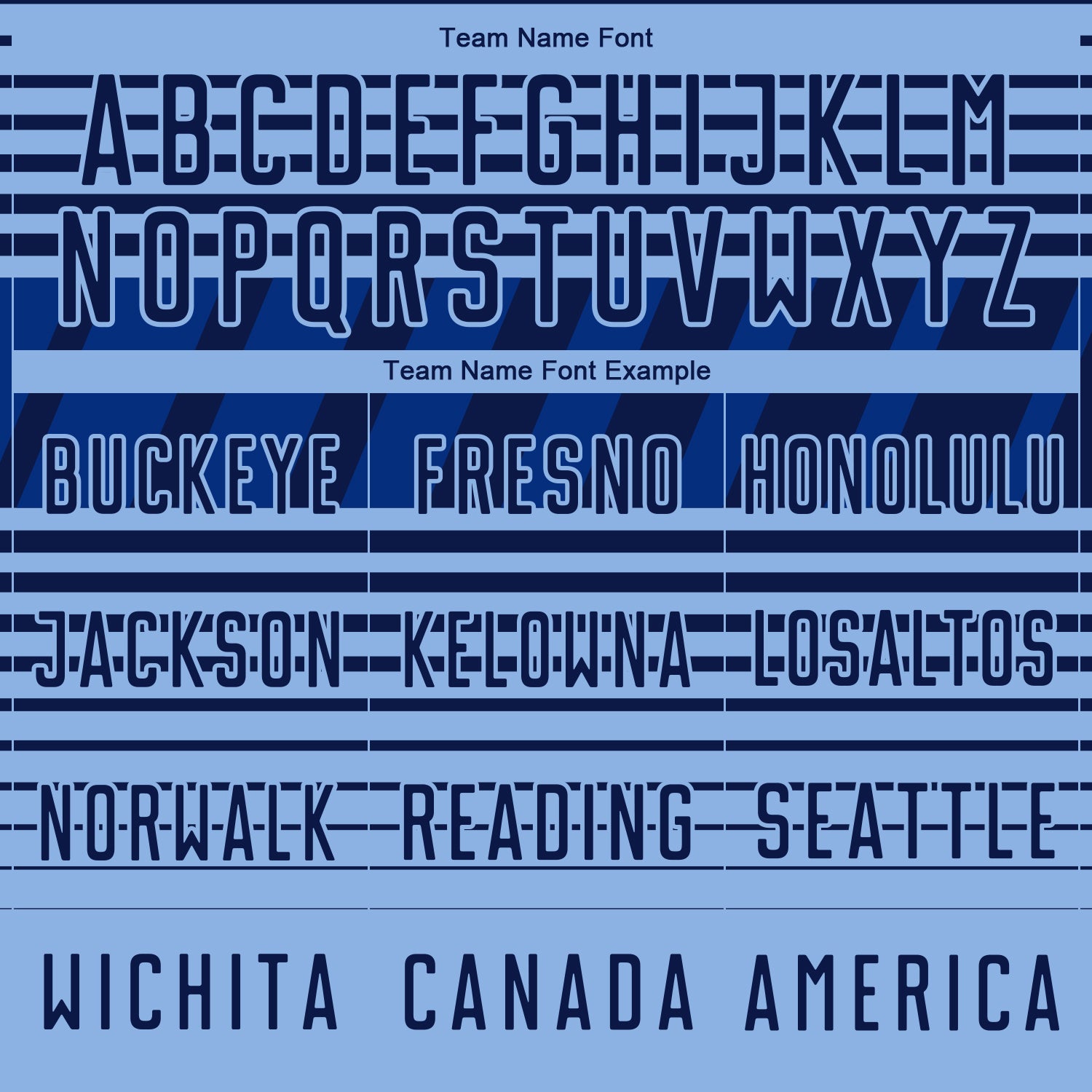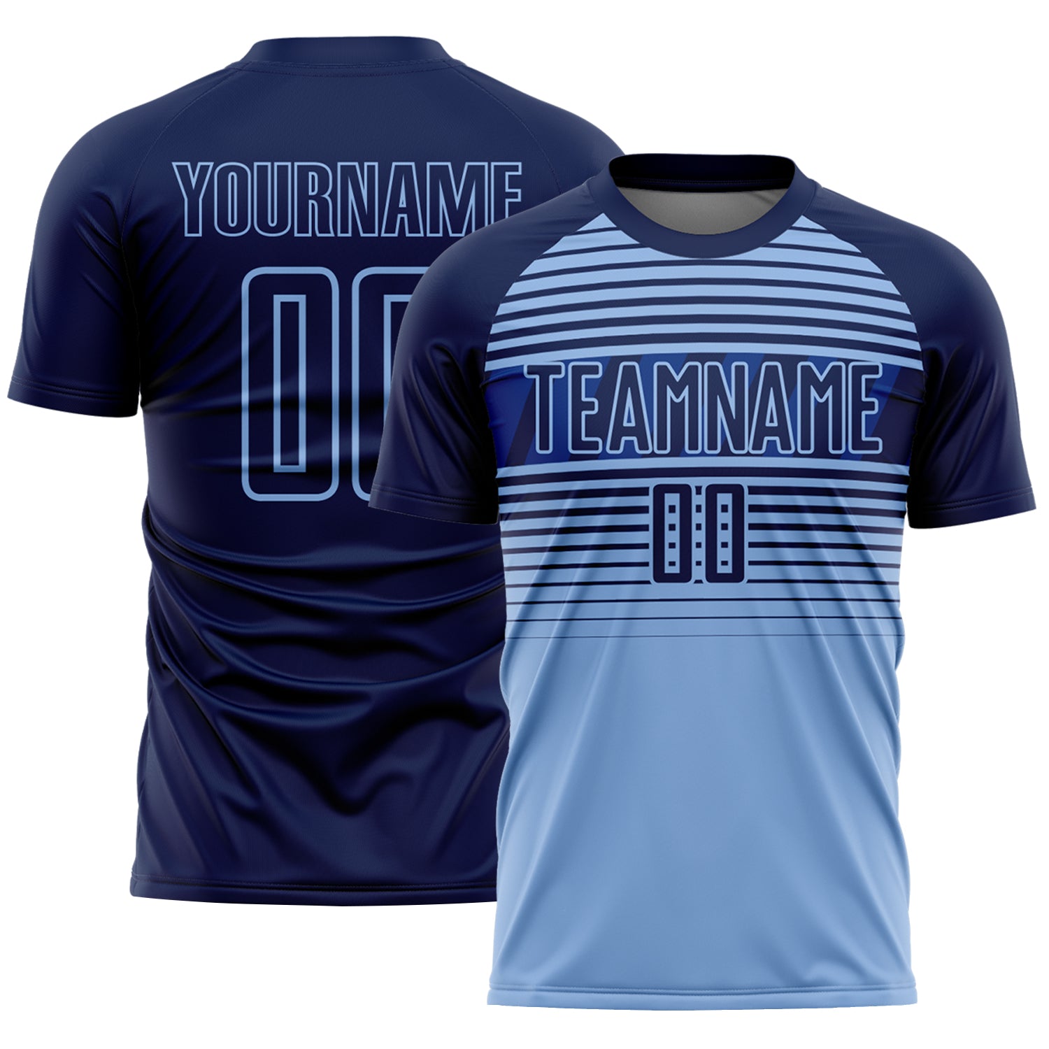 Custom Navy Light Blue-Royal Gradient Horizontal Stripes Sublimation Soccer Uniform Jersey