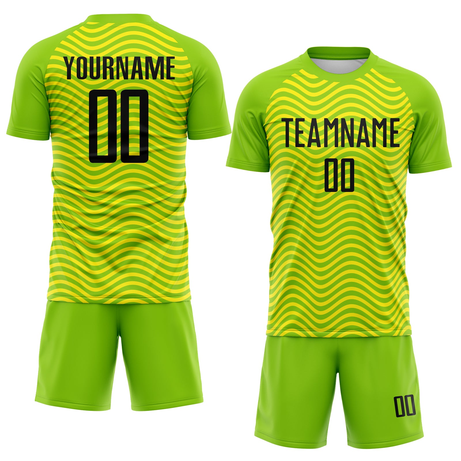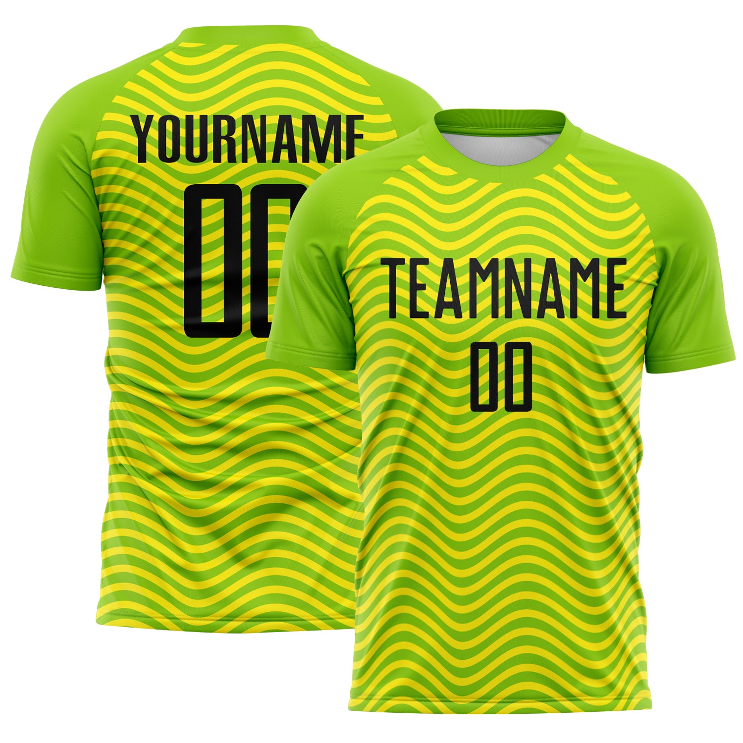 Custom Green Black-Light Yellow Brasil Wave Sublimation Soccer Uniform Jersey
