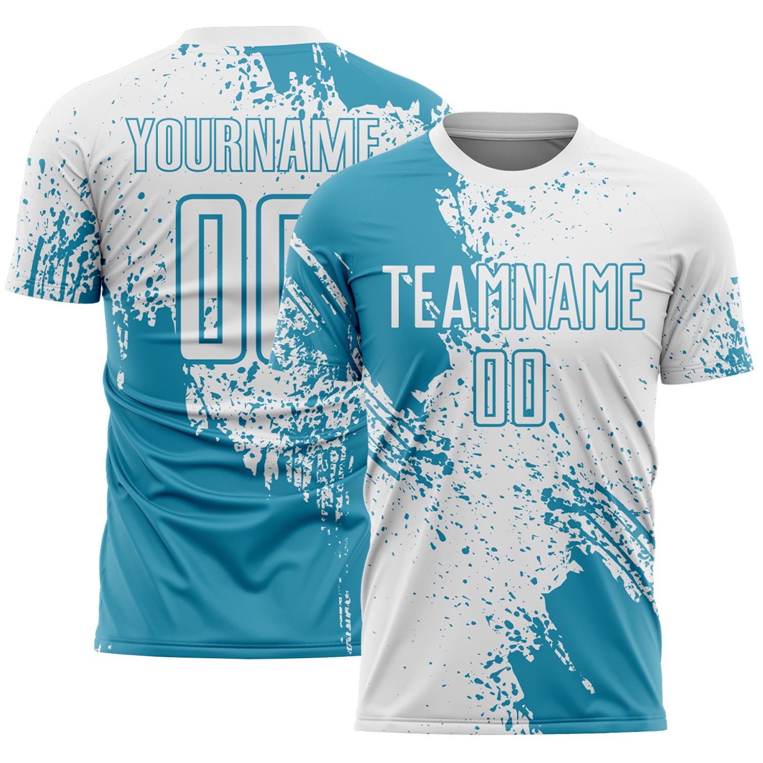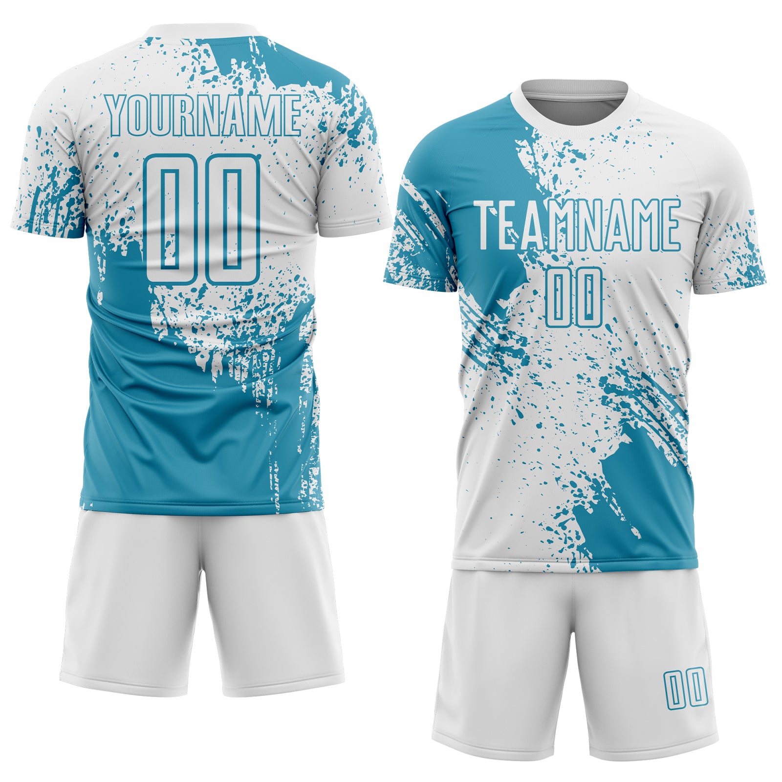Custom White Panther Blue Abstract Brush Stroke Sports Sublimation Soccer Uniform Jersey