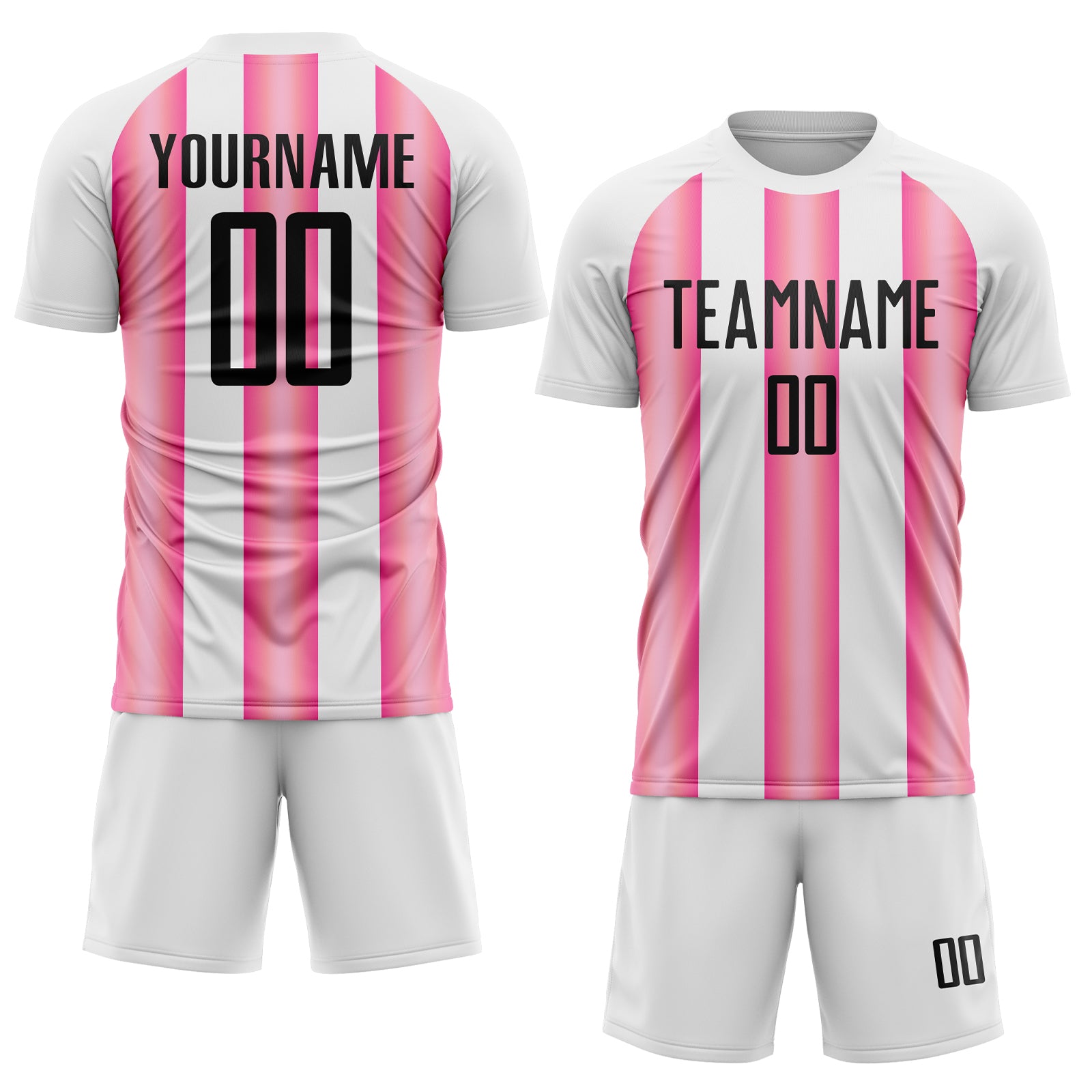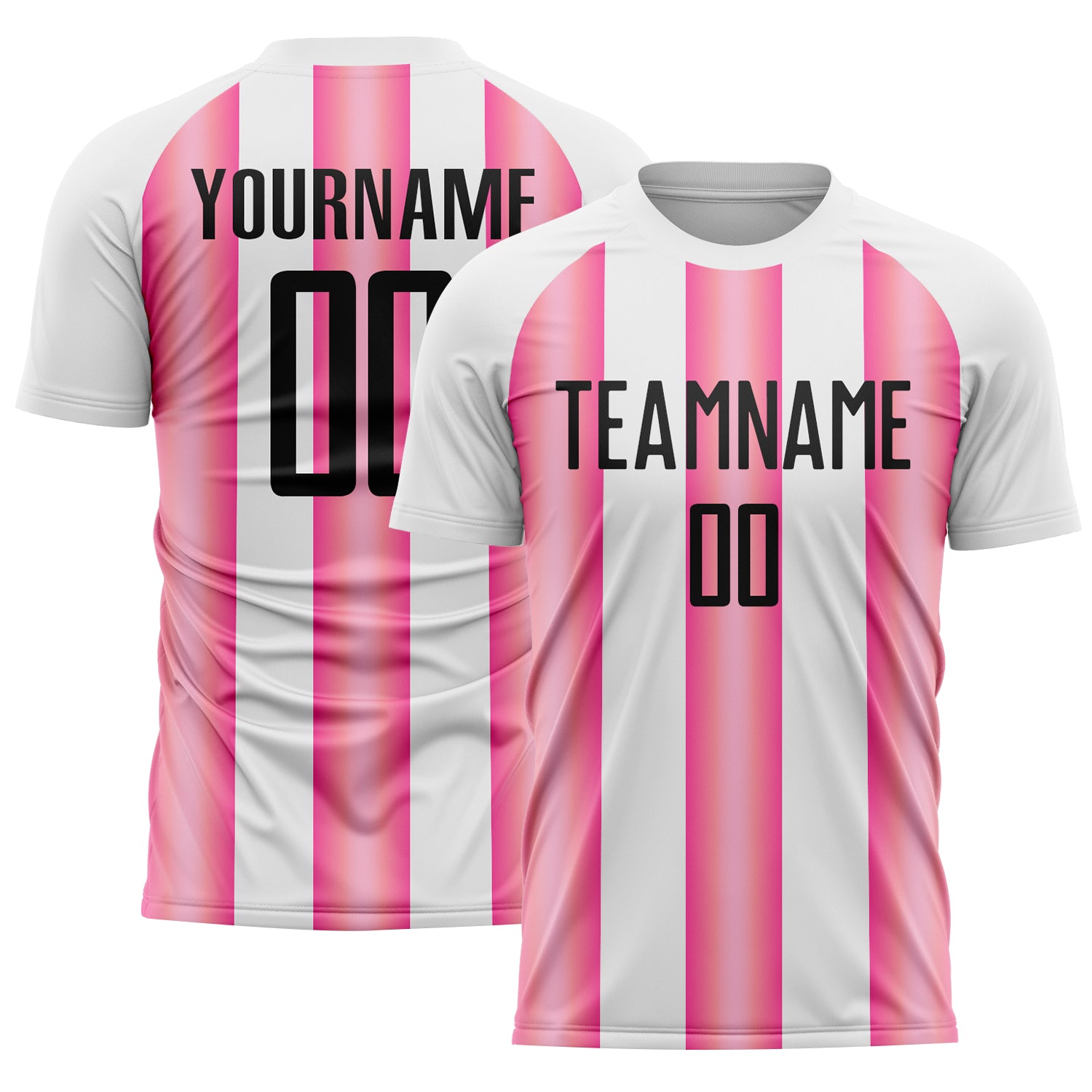 Custom White Black-Pink Stripes Sports Sublimation Soccer Uniform Jersey