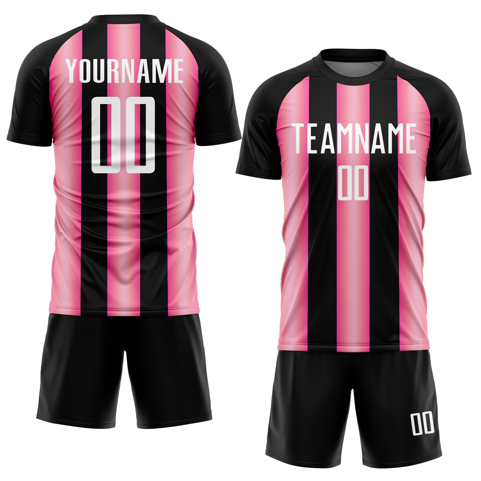 Custom Black White-Pink Stripes Sports Sublimation Soccer Uniform Jersey
