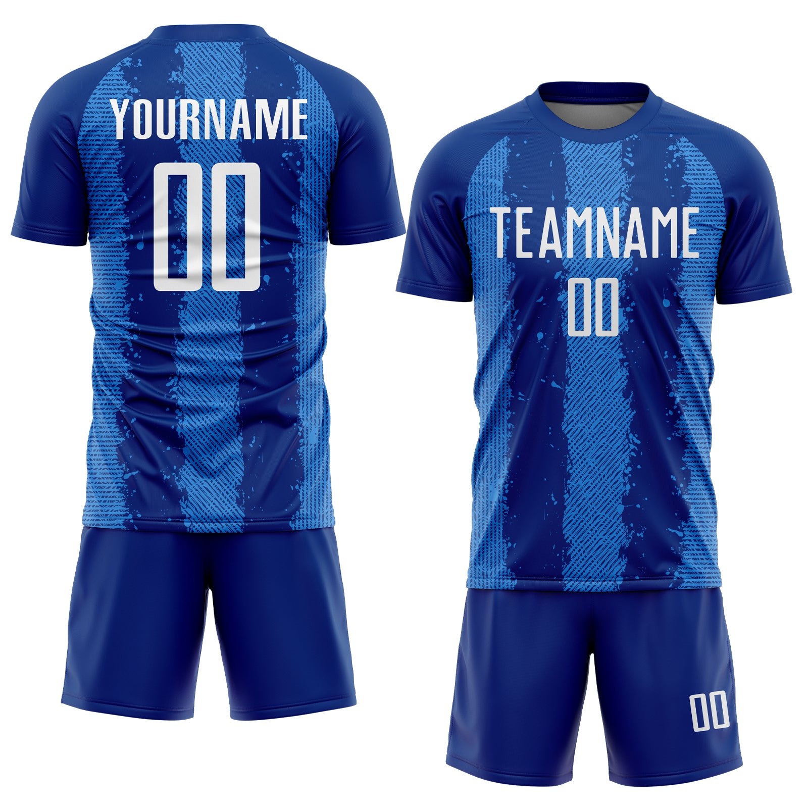 Custom Royal White-Powder Blue Stripes Sports Sublimation Soccer Uniform Jersey
