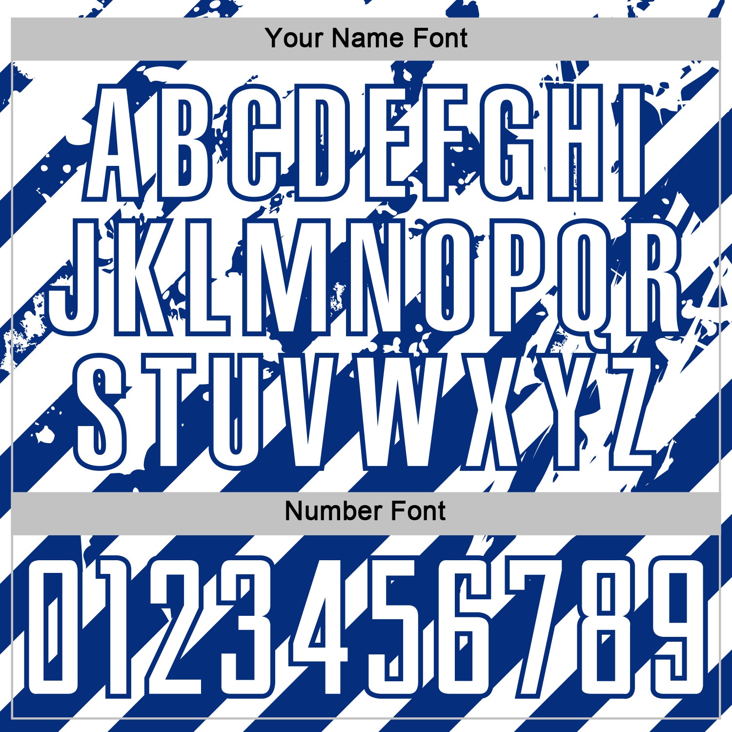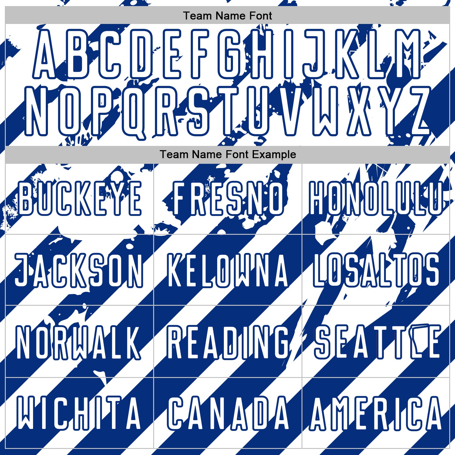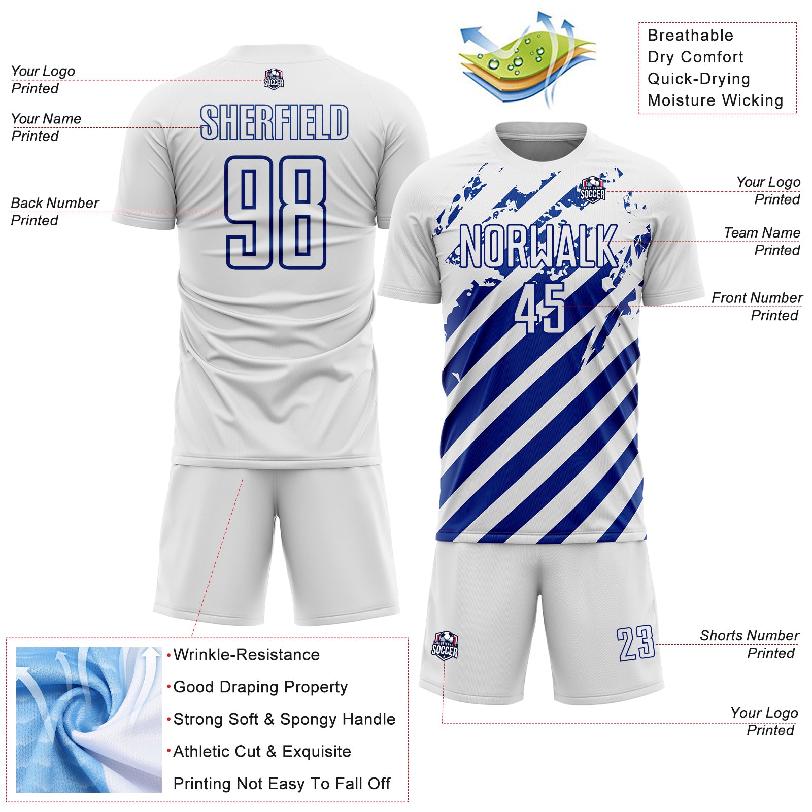 Custom White Royal Distressed Diagonal Stripe Pattern Sports Sublimation Soccer Uniform Jersey