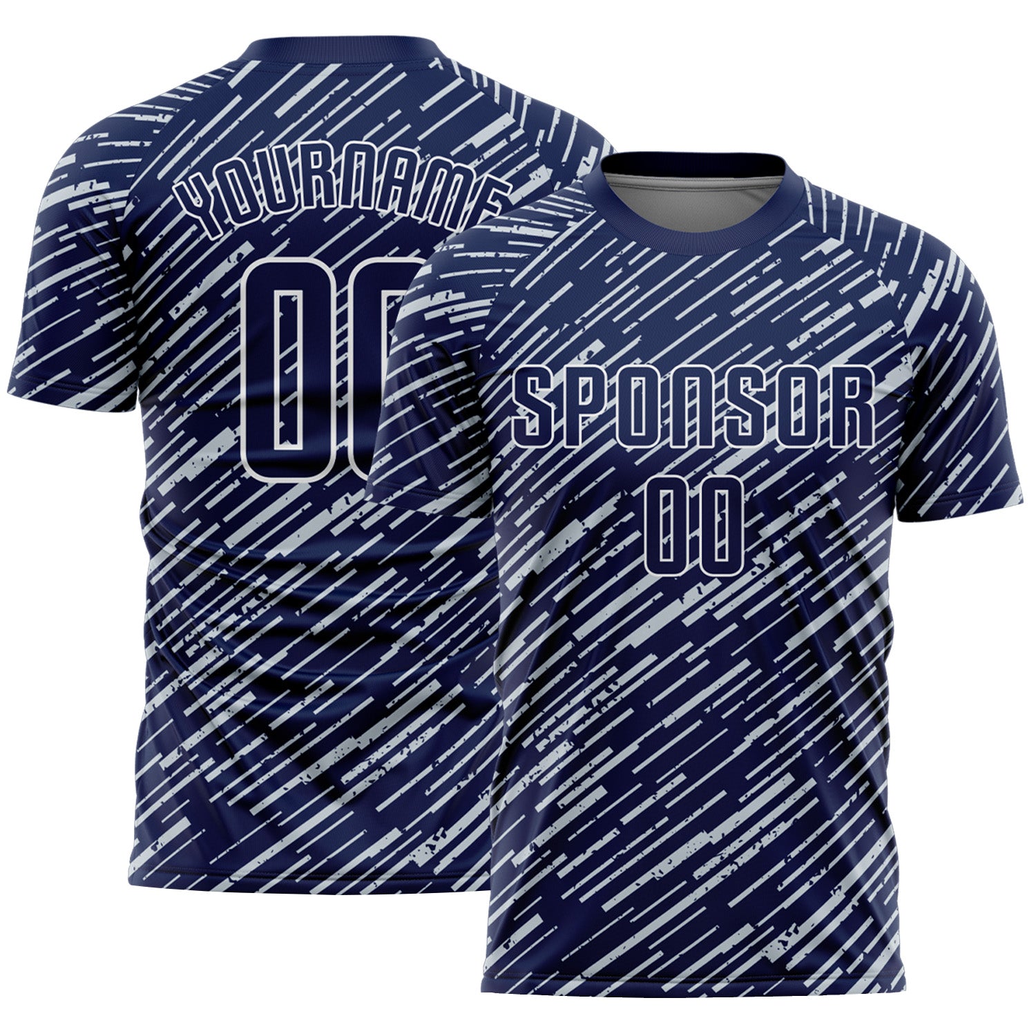 Custom Navy Silver-White Line Sports Sublimation Soccer Uniform Jersey