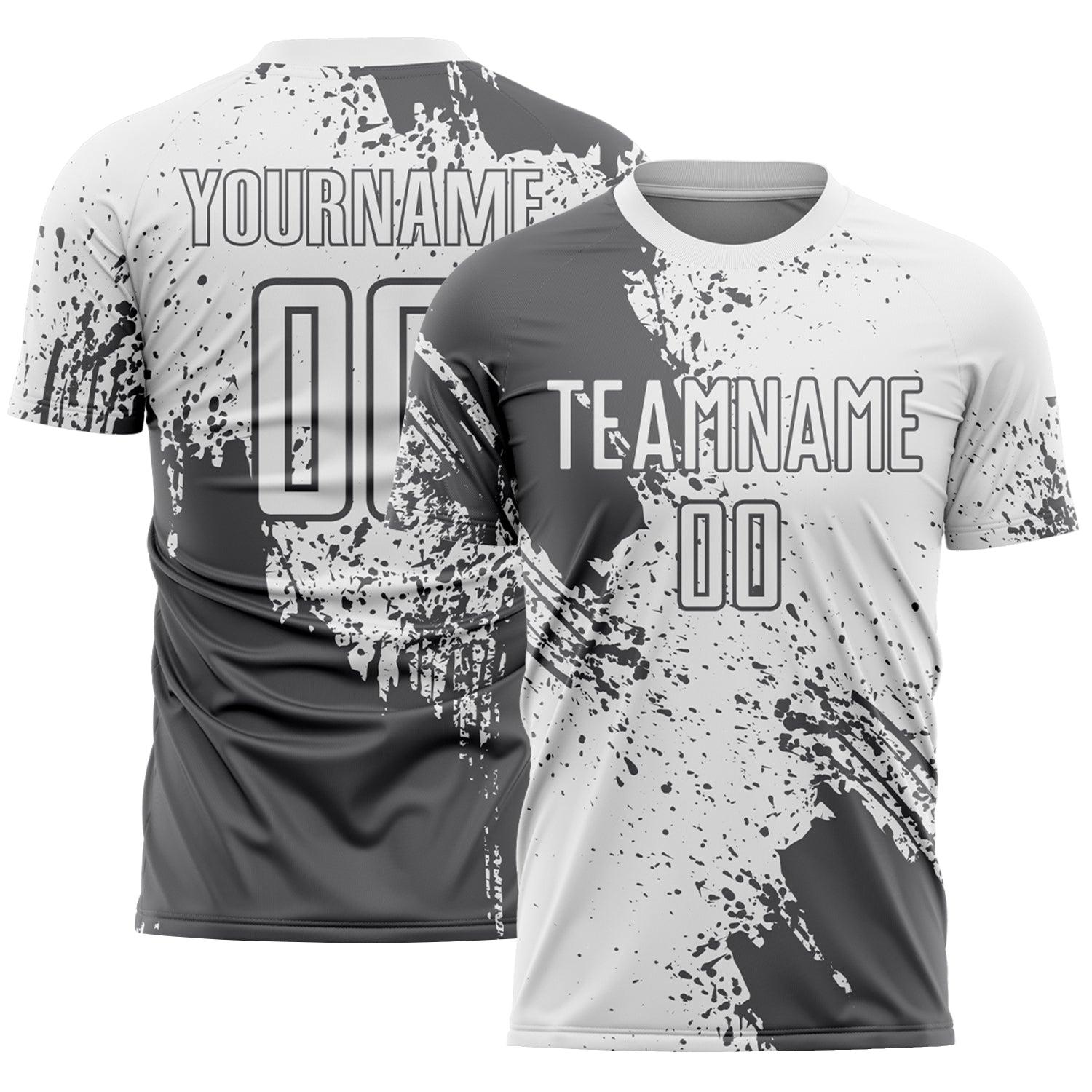 Custom White Steel Gray Abstract Brush Stroke Sports Sublimation Soccer Uniform Jersey
