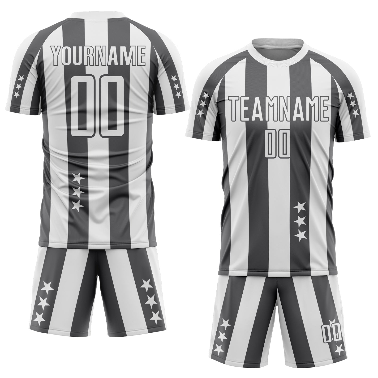 Custom White Steel Gray Stars And Stripes Sports Sublimation Soccer Uniform Jersey