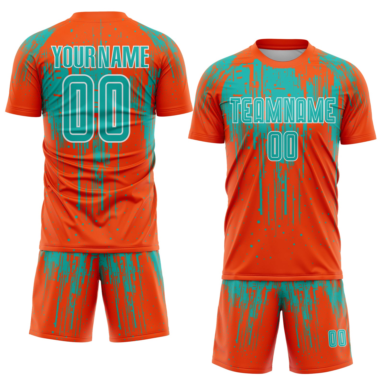 Custom Orange Aqua-White Dripping Splatte Pattern Sports Sublimation Soccer Uniform Jersey