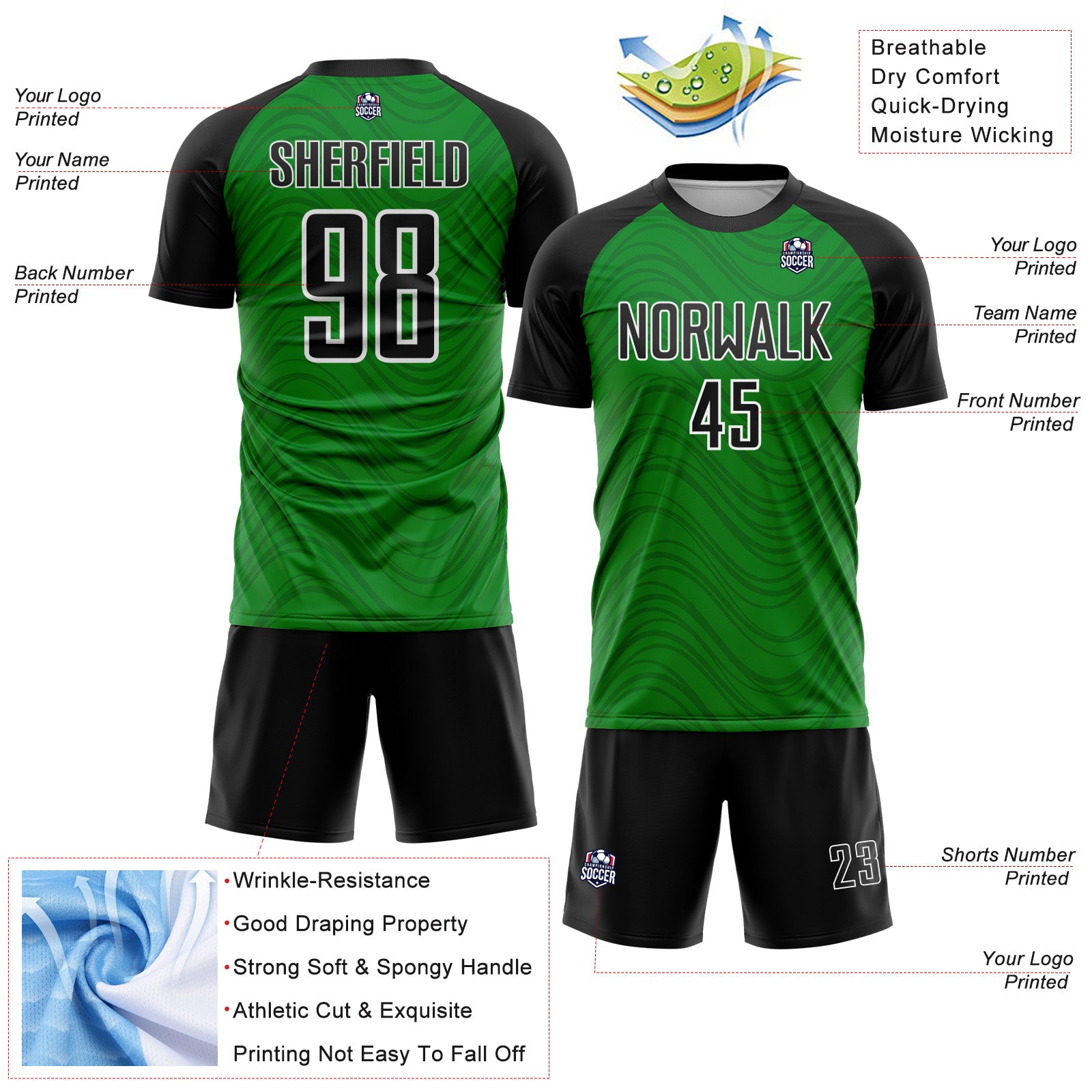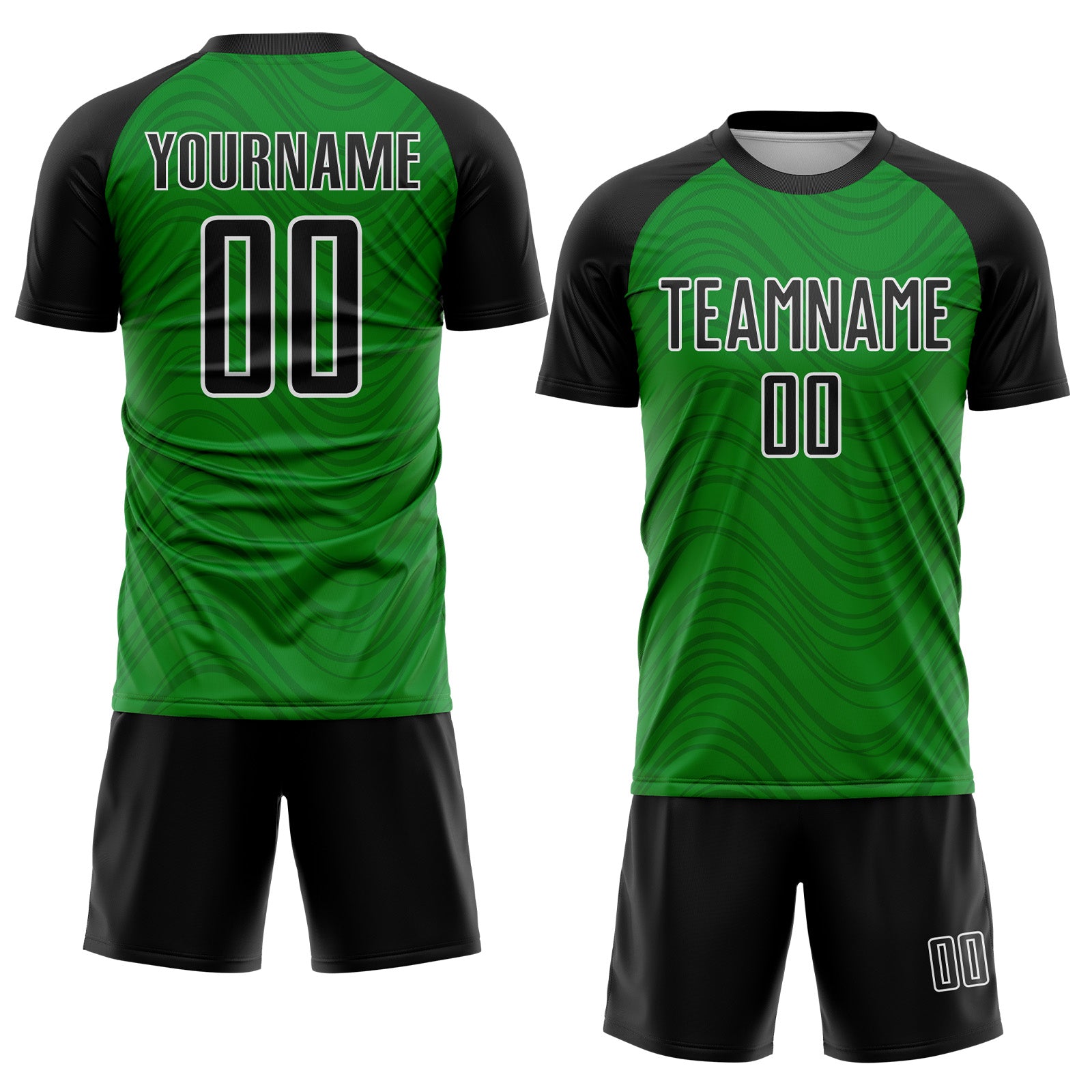 Custom Grass Green Black-White Wavy Lines Sports Sublimation Soccer Uniform Jersey