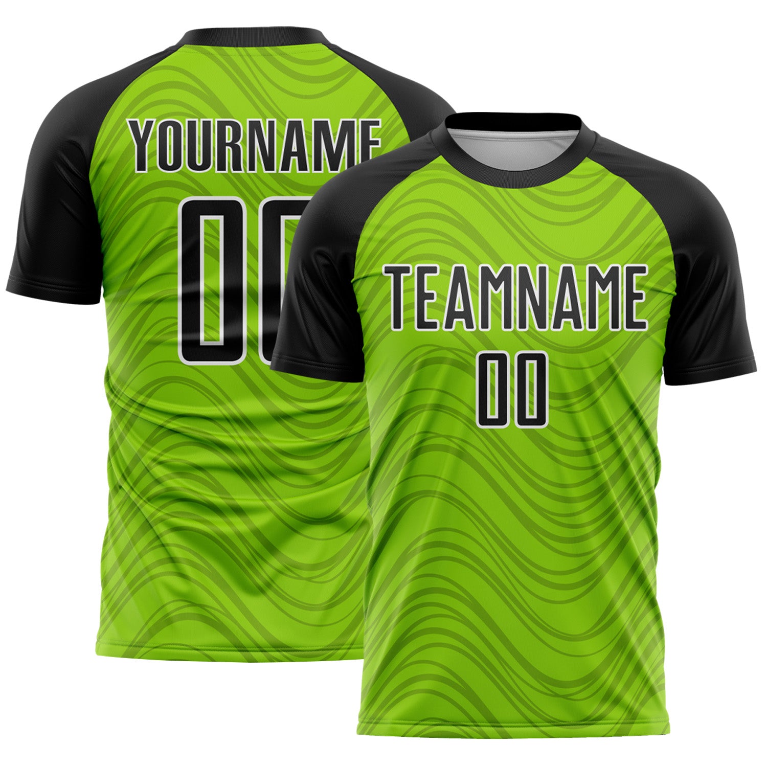 Custom Neon Green Black-White Wavy Lines Sports Sublimation Soccer Uniform Jersey