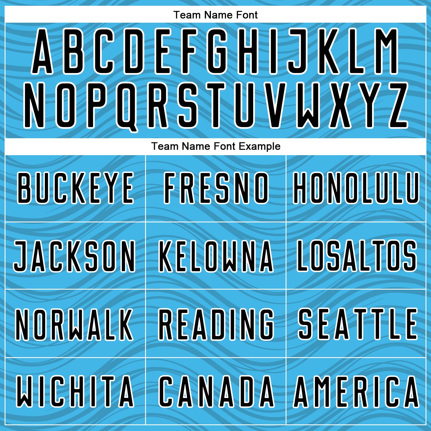 Custom Sky Blue Black-White Wavy Lines Sports Sublimation Soccer Uniform Jersey