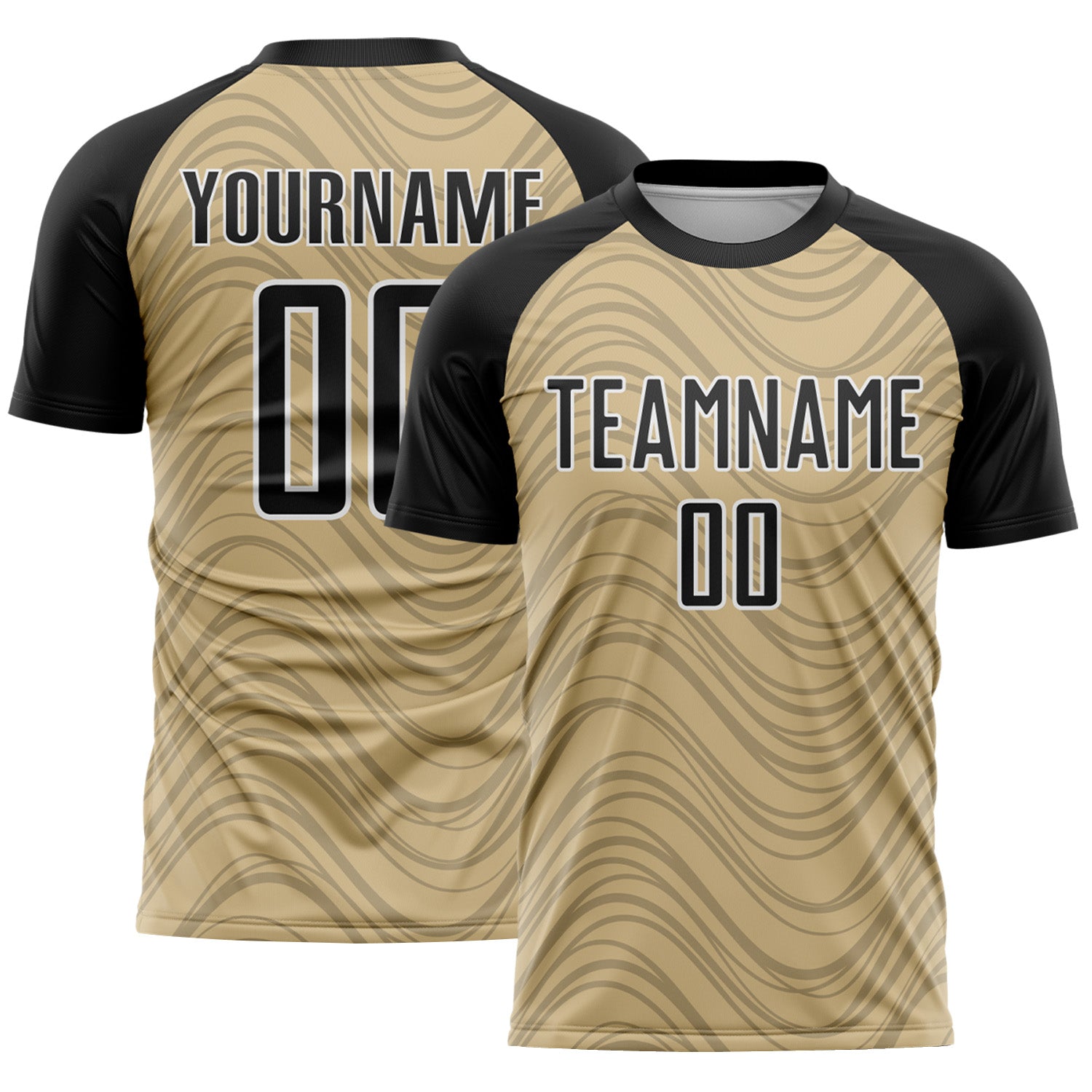 Custom Vegas Gold Black-White Wavy Lines Sports Sublimation Soccer Uniform Jersey