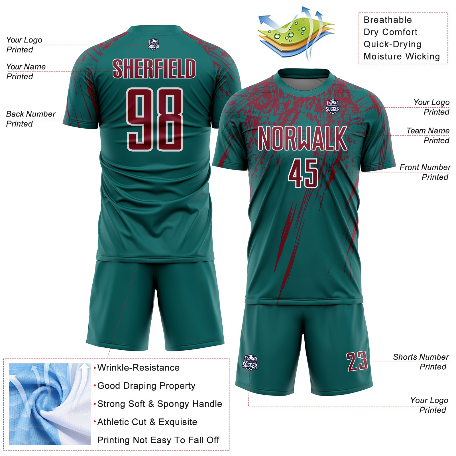 Custom Teal Crimson-White Splash Sports Sublimation Soccer Uniform Jersey
