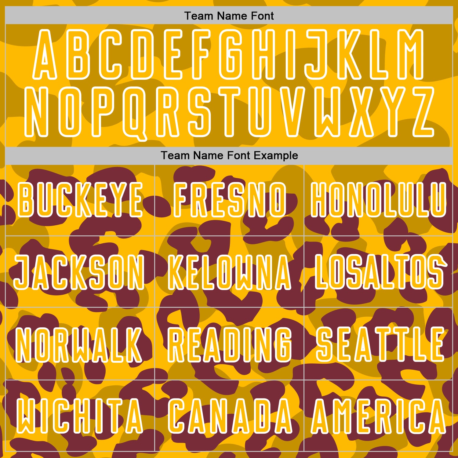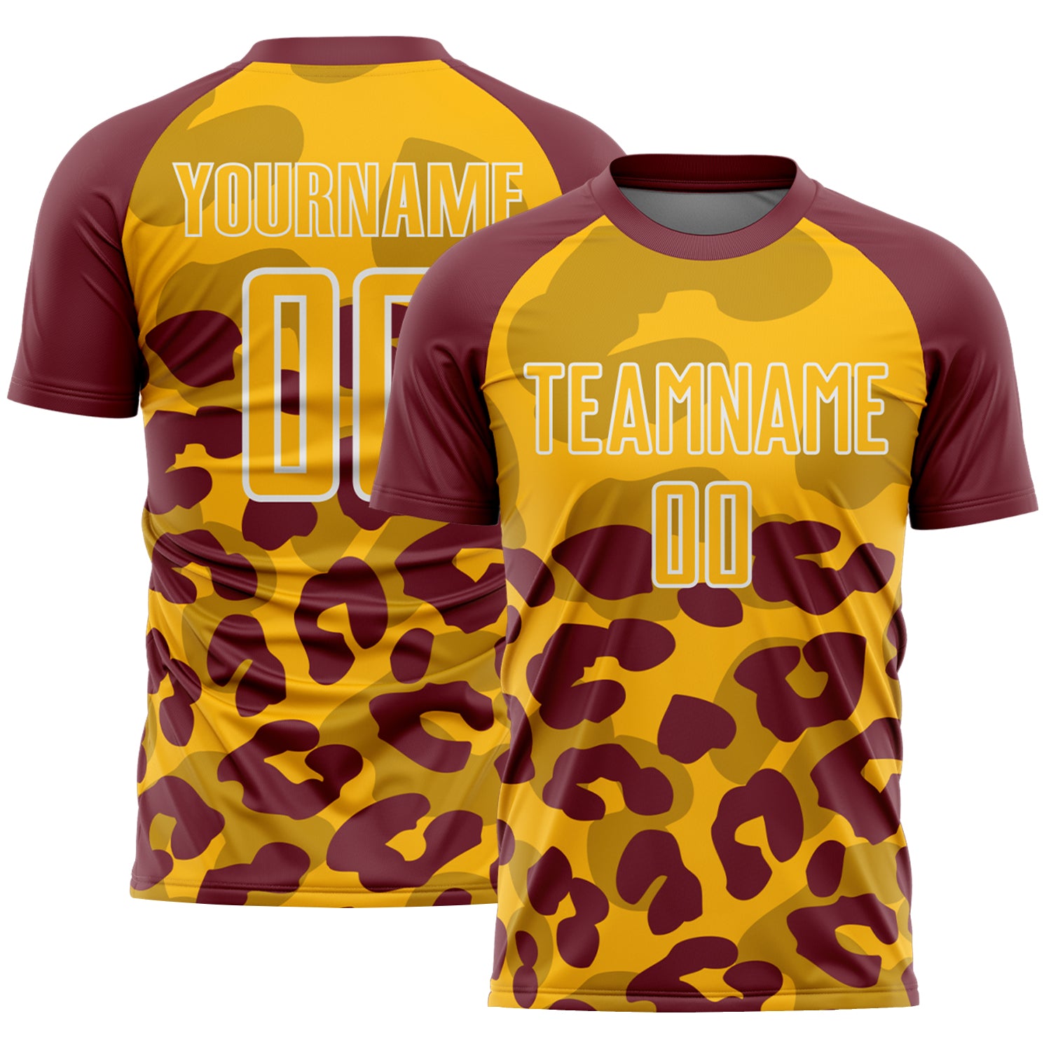 Custom Burgundy Gold-White Animal Leopard Print Sports Sublimation Soccer Uniform Jersey