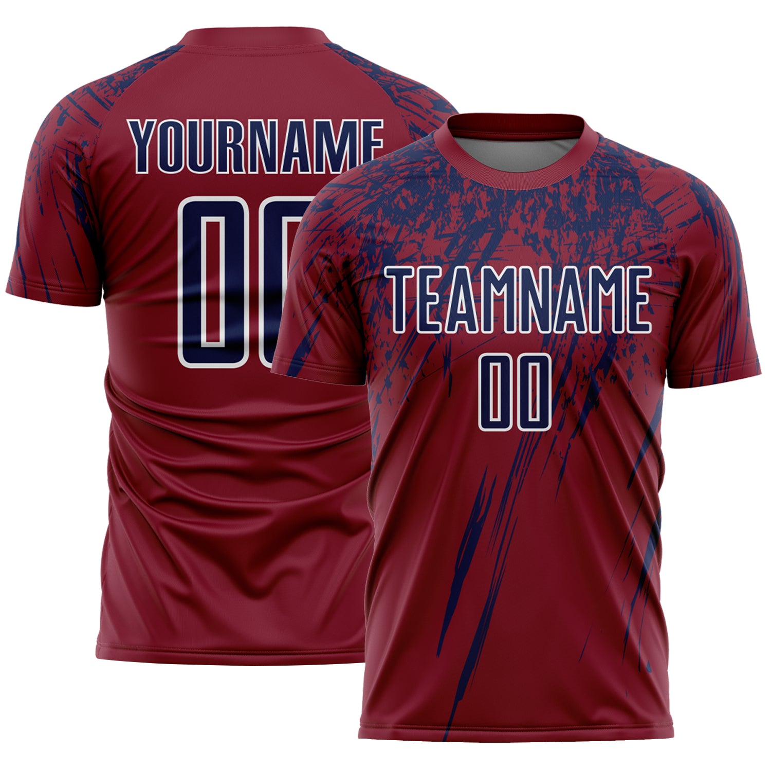 Custom Crimson Navy-White Splash Sports Sublimation Soccer Uniform Jersey