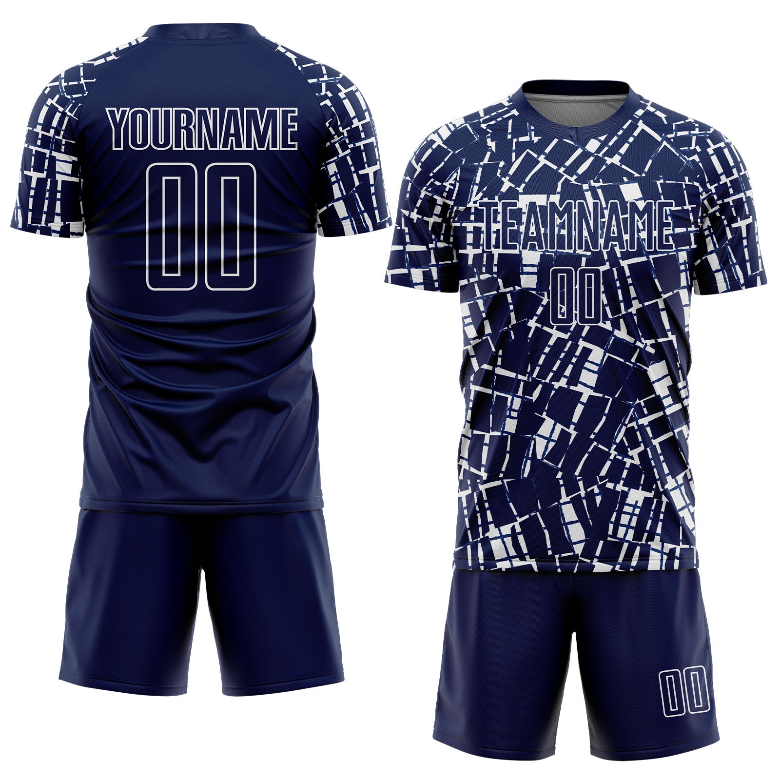 Custom Navy White Abstract Line Sports Sublimation Soccer Uniform Jersey