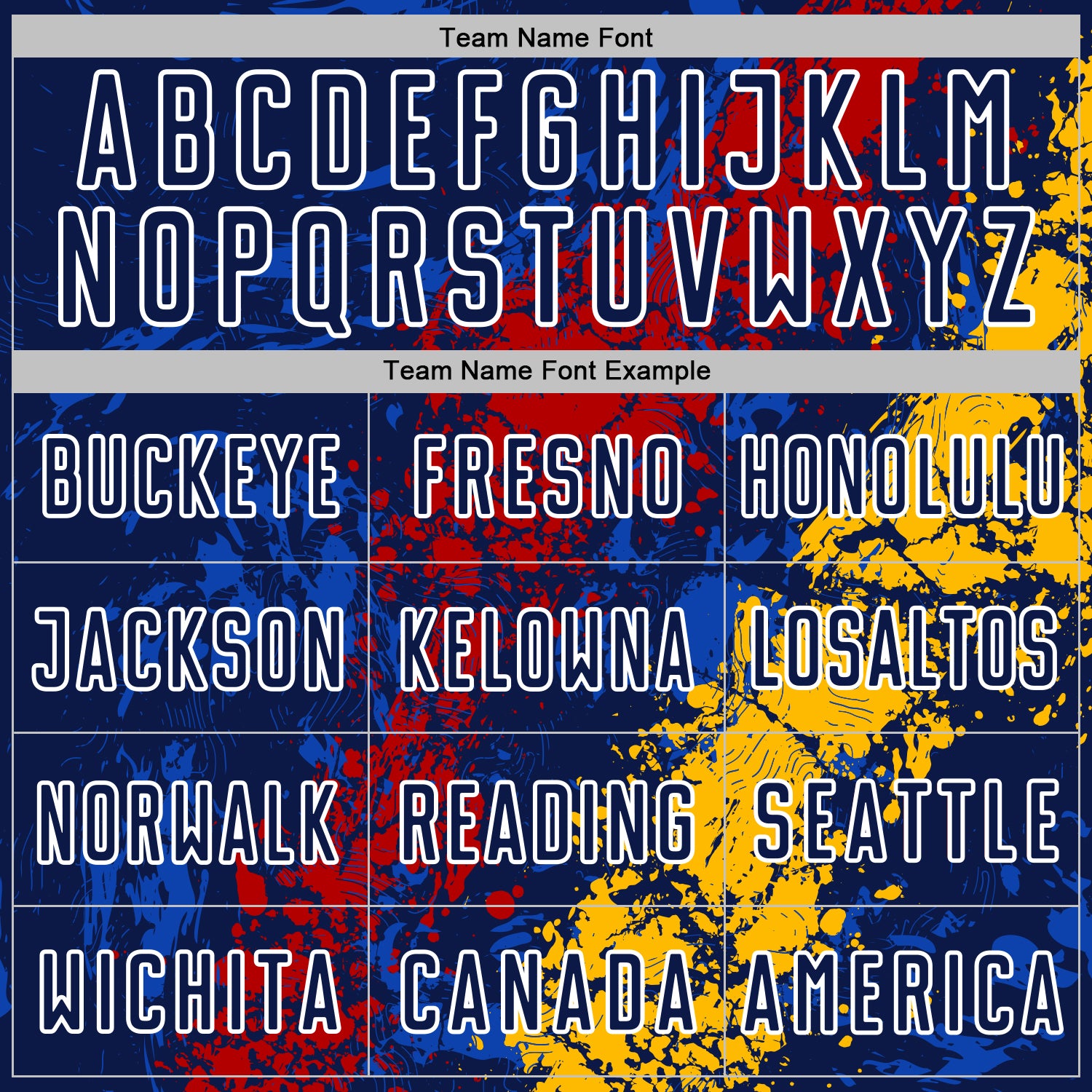 Custom Navy White Red-Gold Dripping Splatter Cracked Texture Sublimation Soccer Uniform Jersey