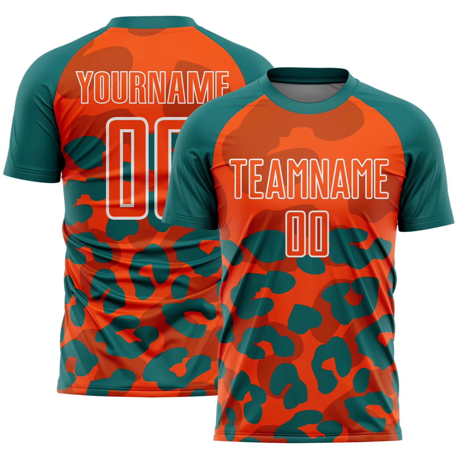 Custom Teal Orange-White Animal Leopard Print Sports Sublimation Soccer Uniform Jersey