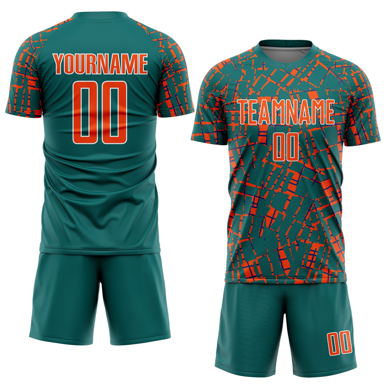 Custom Teal Orange-White Abstract Line Sports Sublimation Soccer Uniform Jersey