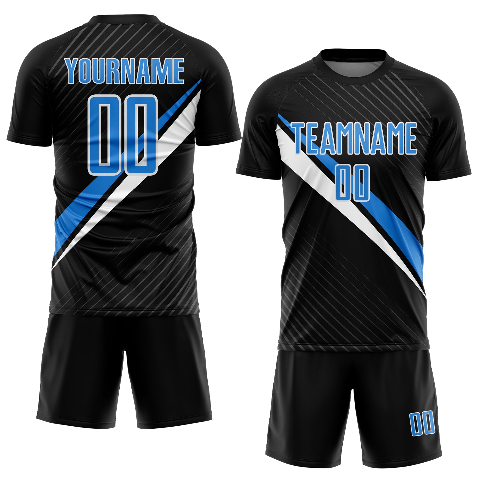Custom Black Powder Blue-White Diagonal Stripes Sports Sublimation Soccer Uniform Jersey