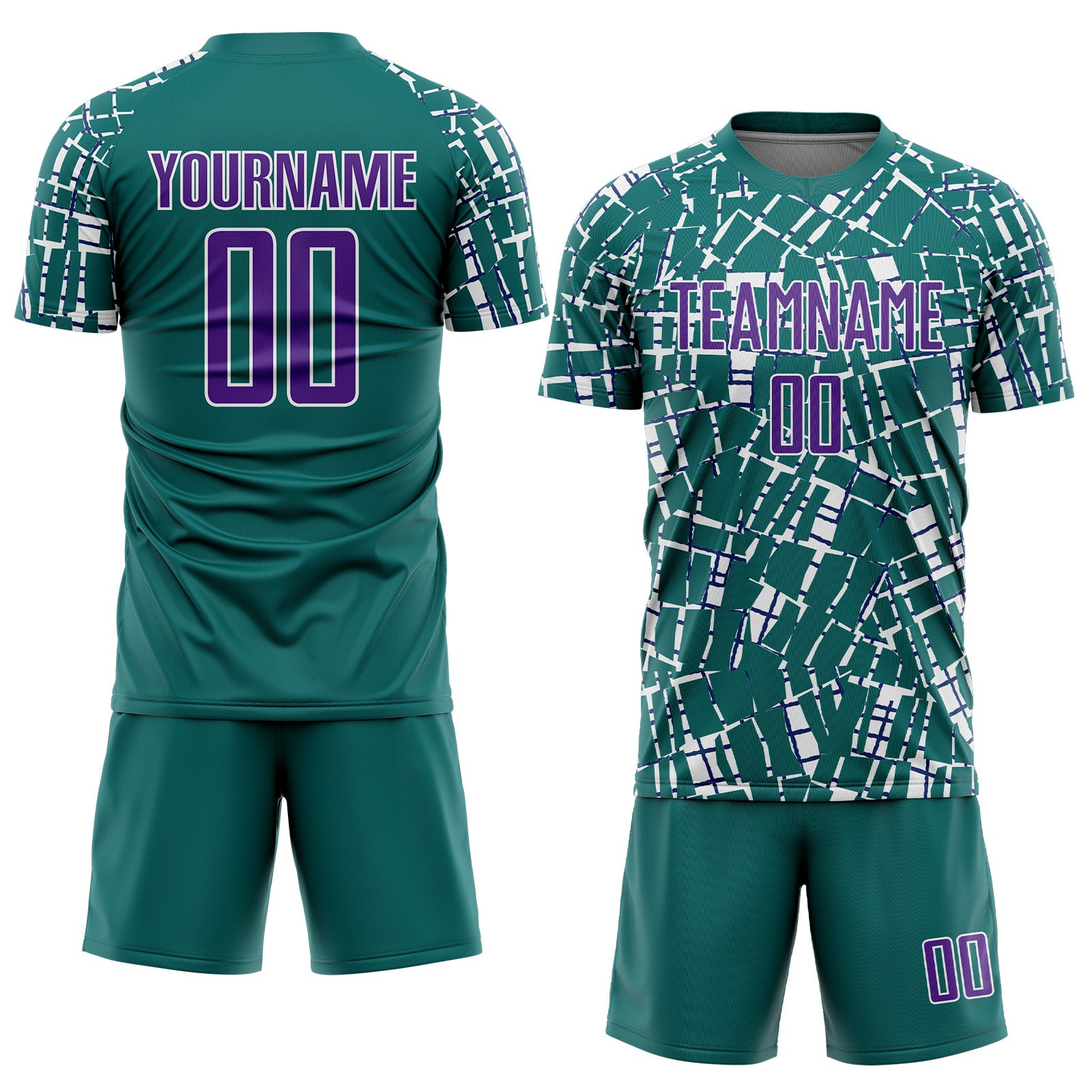 Custom Teal Purple-White Abstract Line Sports Sublimation Soccer Uniform Jersey