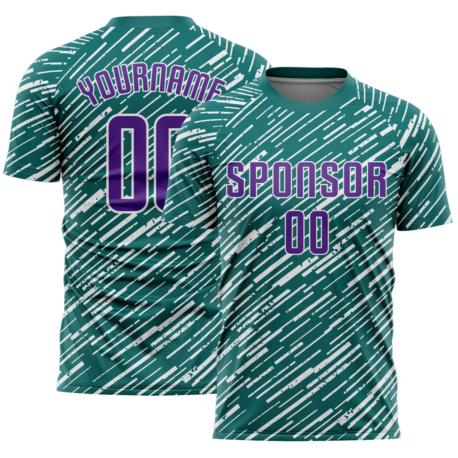 Custom Teal Purple-White Line Sports Sublimation Soccer Uniform Jersey