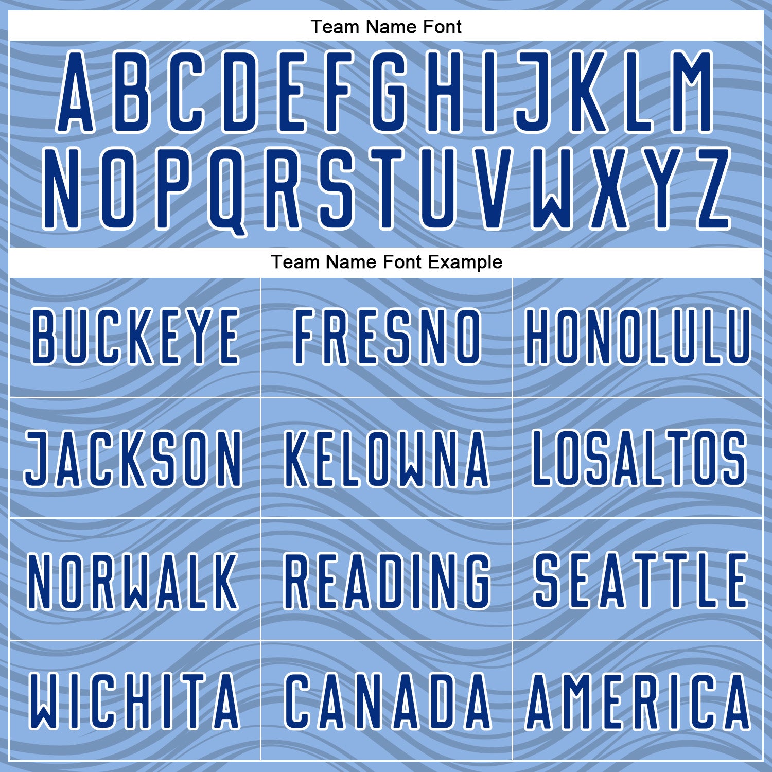 Custom Light Blue Royal-White Wavy Lines Sports Sublimation Soccer Uniform Jersey