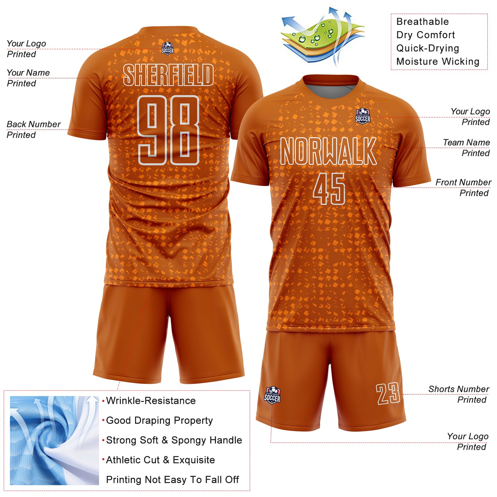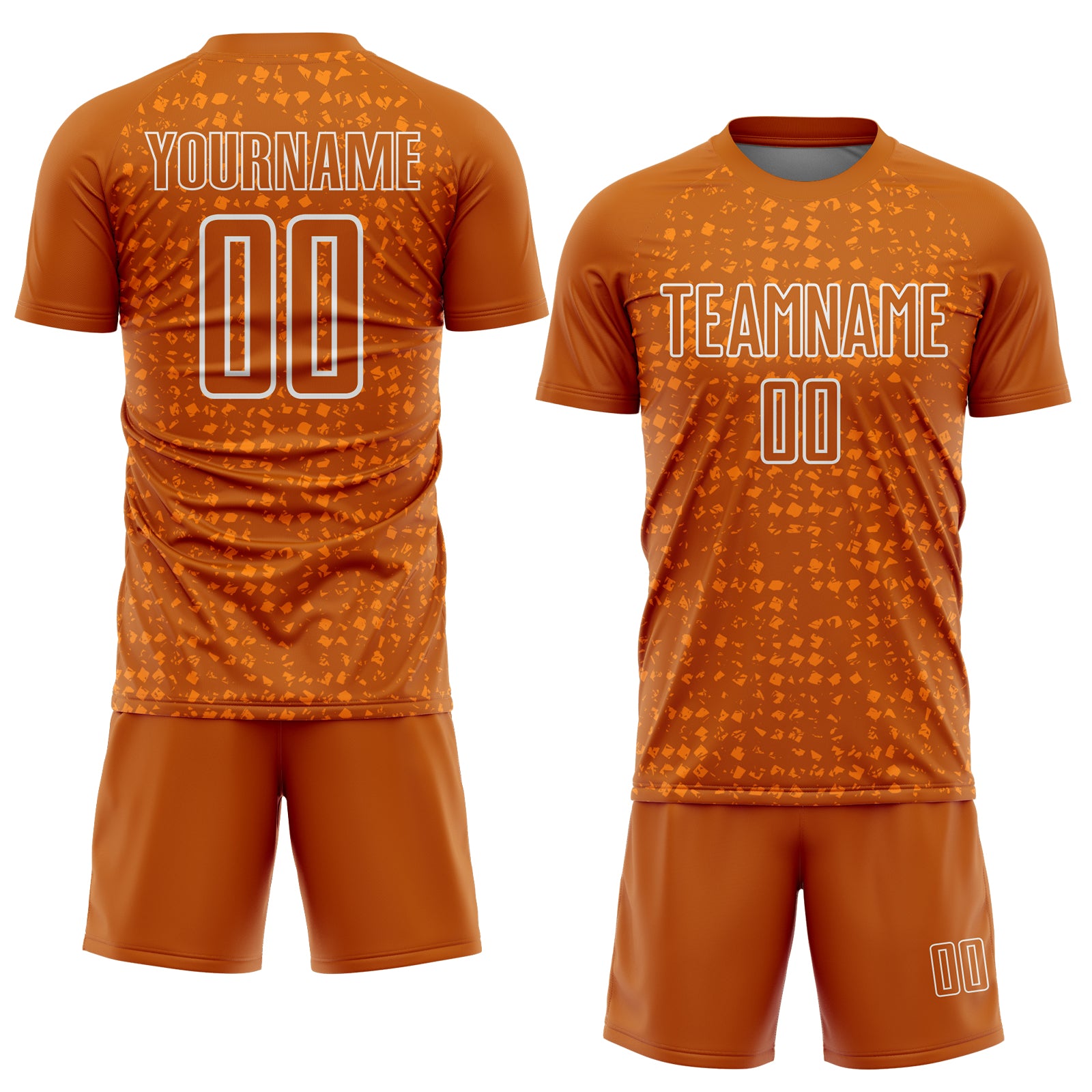 Custom Texas Orange White-Bay Orange Digital Geometric Fragment Speckles Sublimation Soccer Uniform Jersey