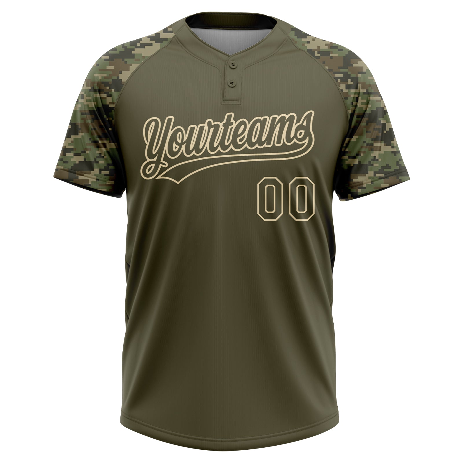 Custom Olive Cream Salute To Service Camo Raglan Sleeves Two-Button Unisex Softball Jersey