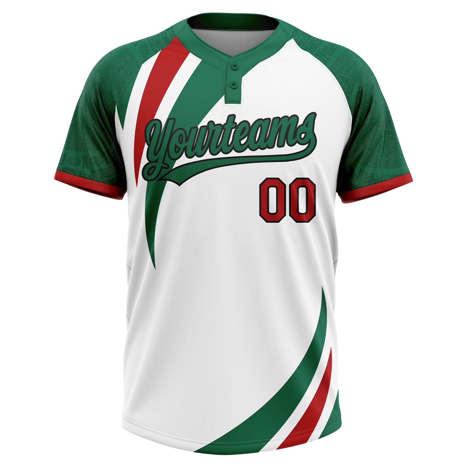 Custom White Red Kelly Green-Black Mexico Two-Button Unisex Softball Jersey