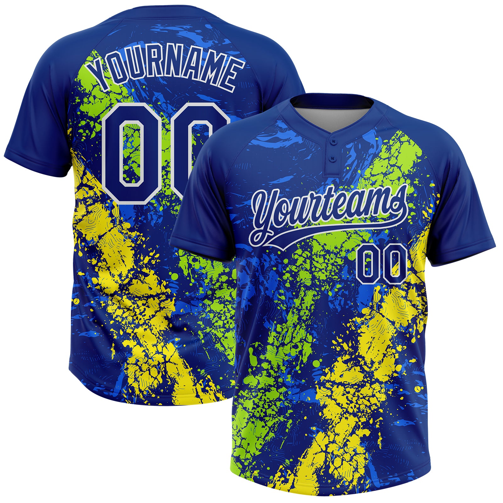 Custom Royal Neon Green Light Yellow-White Dripping Splatter Cracked Texture Two-Button Unisex Softball Jersey