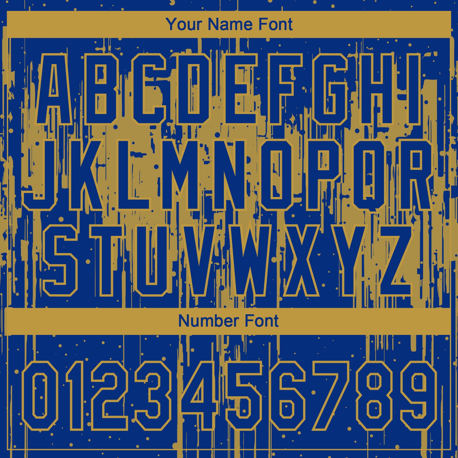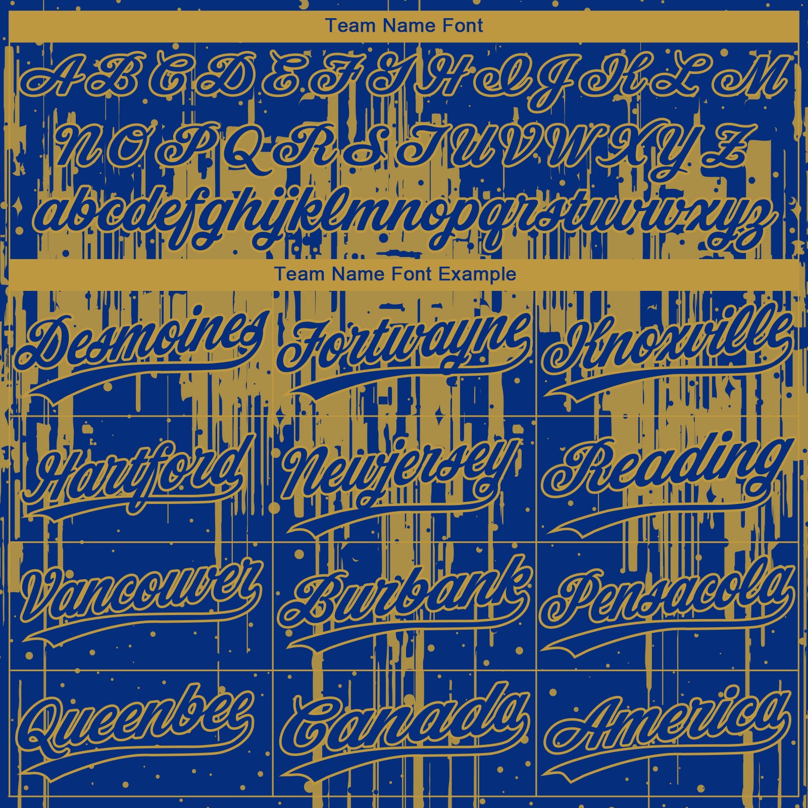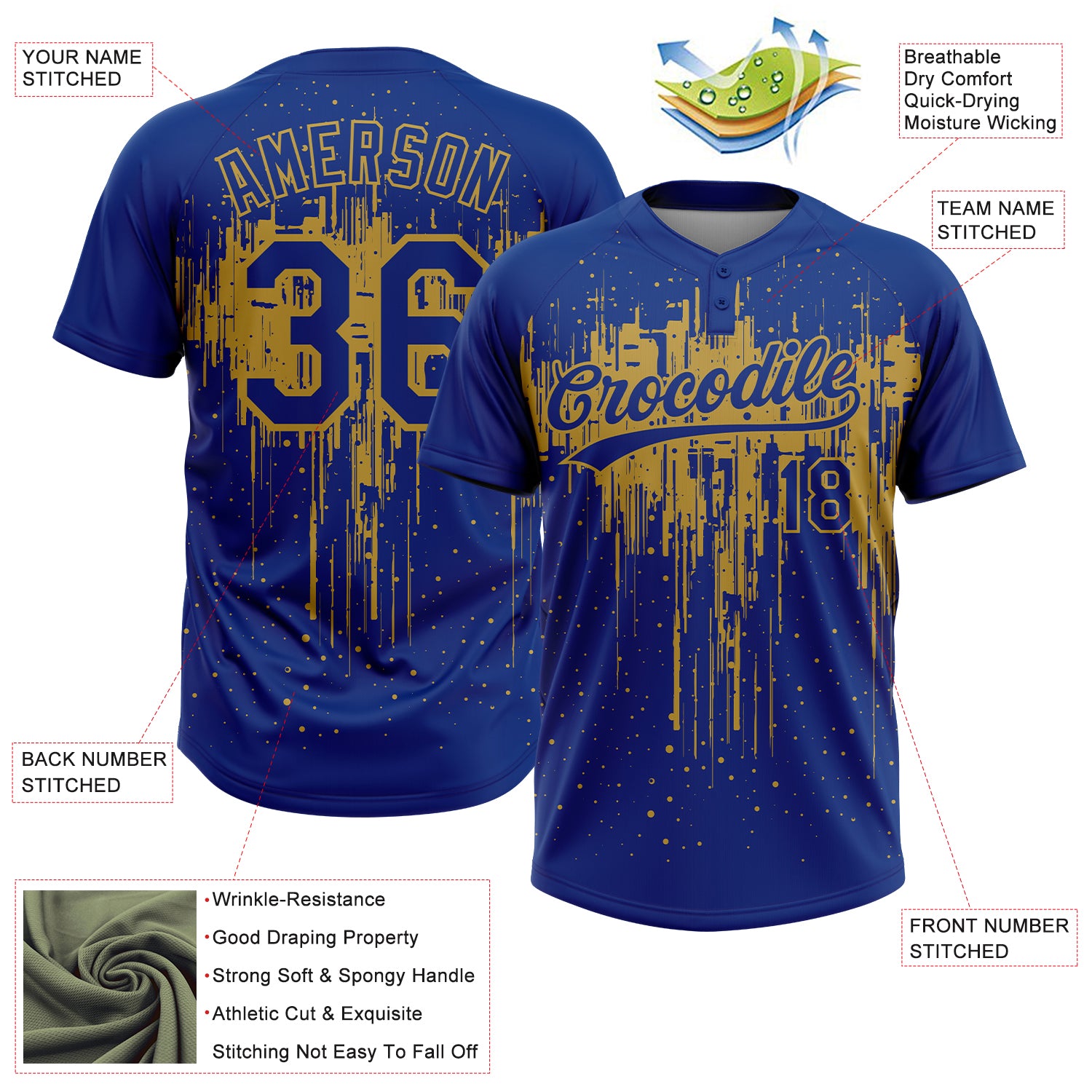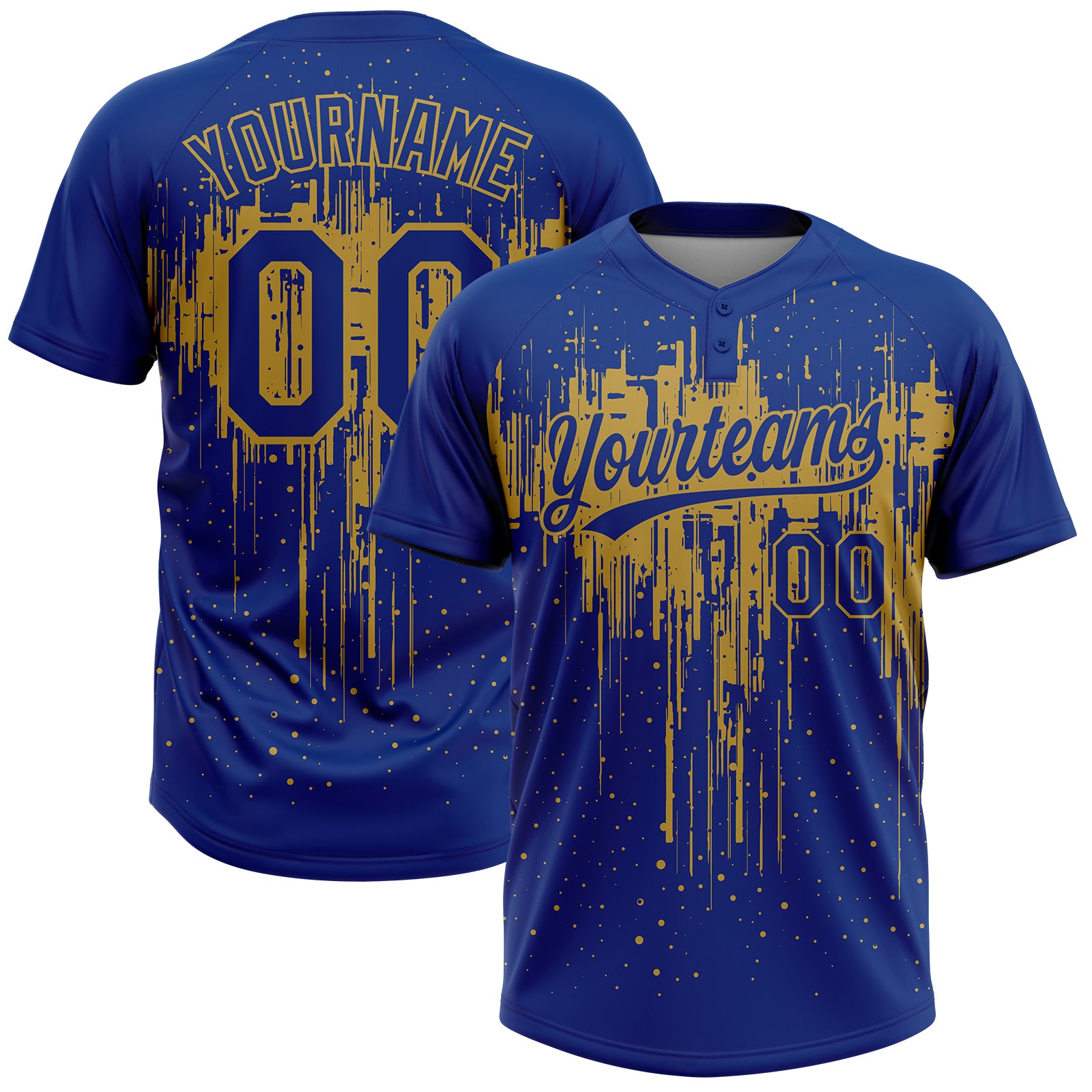 Custom Royal Old Gold Dripping Splatter Paint Two-Button Unisex Softball Jersey