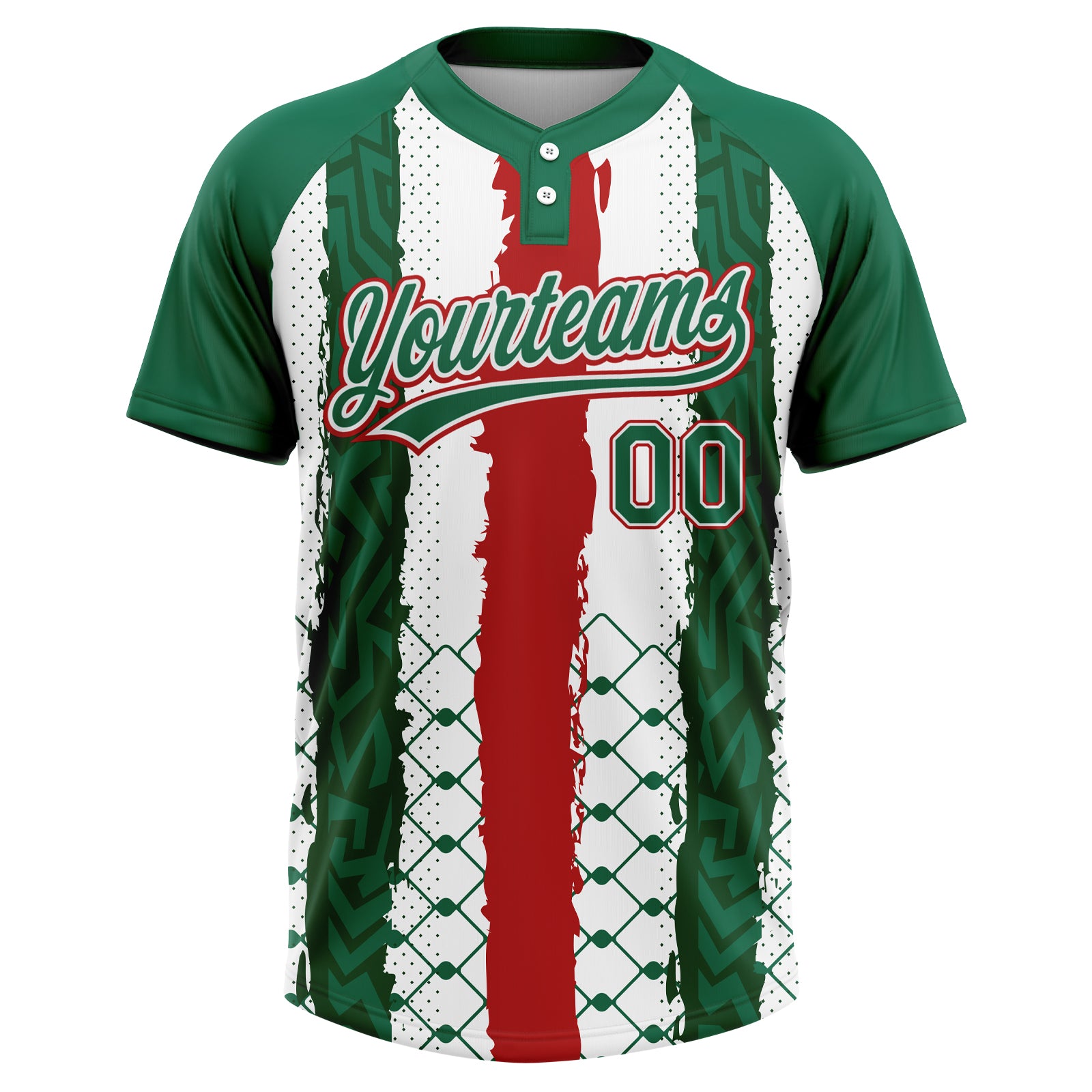 Custom Kelly Green Red-White Mexico Two-Button Unisex Softball Jersey