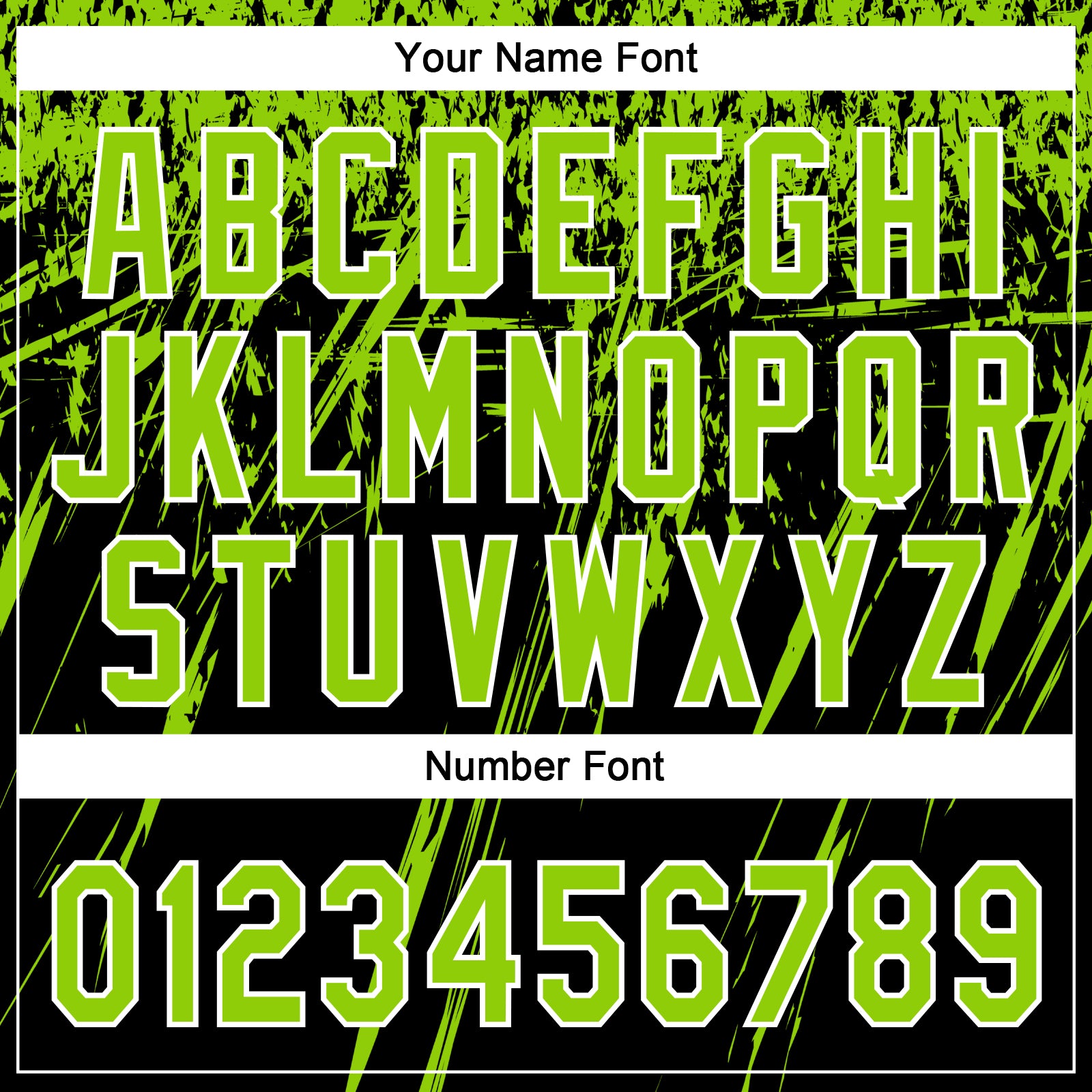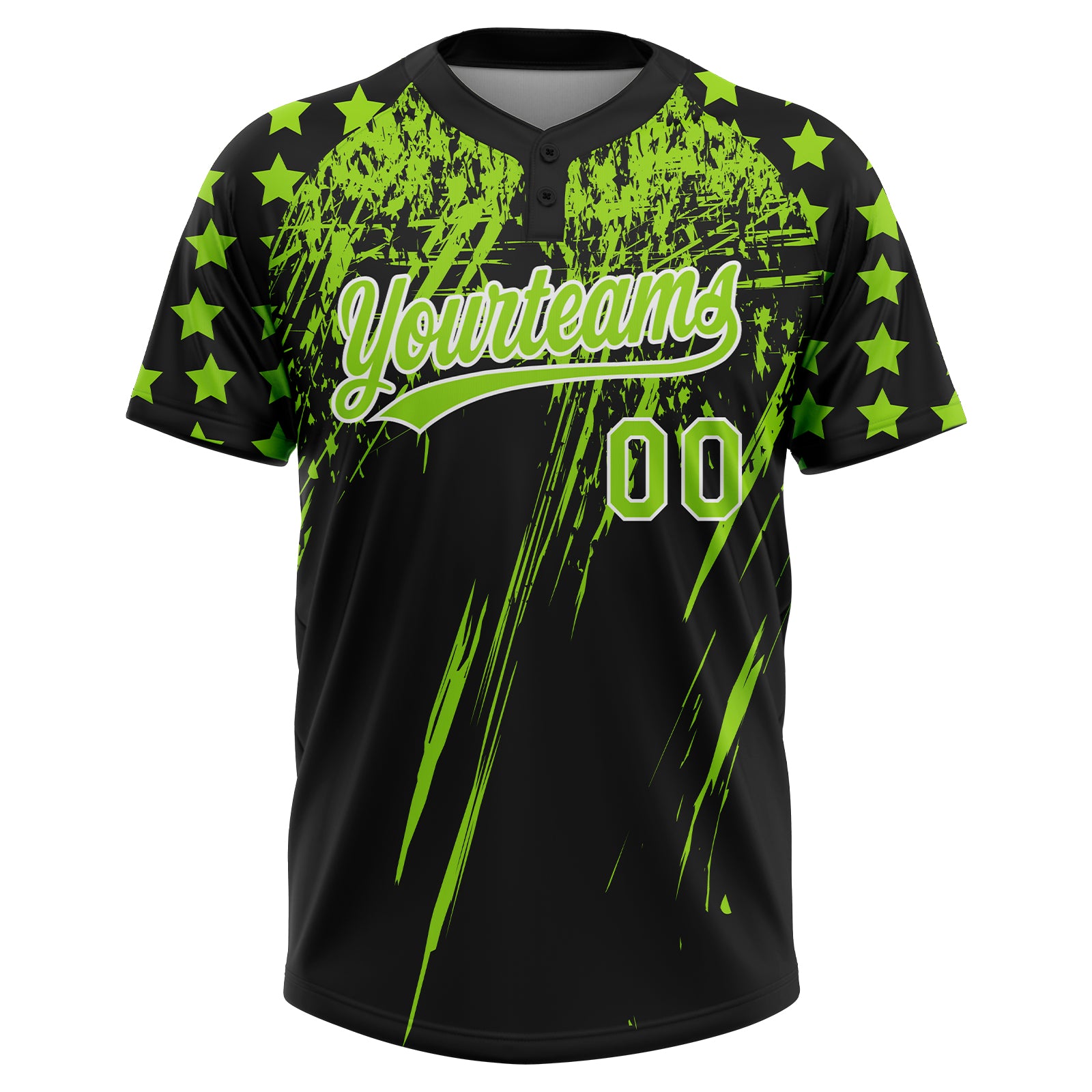 Custom Black Neon Green-White Distressed Scratch Brush Stroke Star Raglan Sleeves Two-Button Unisex Softball Jersey